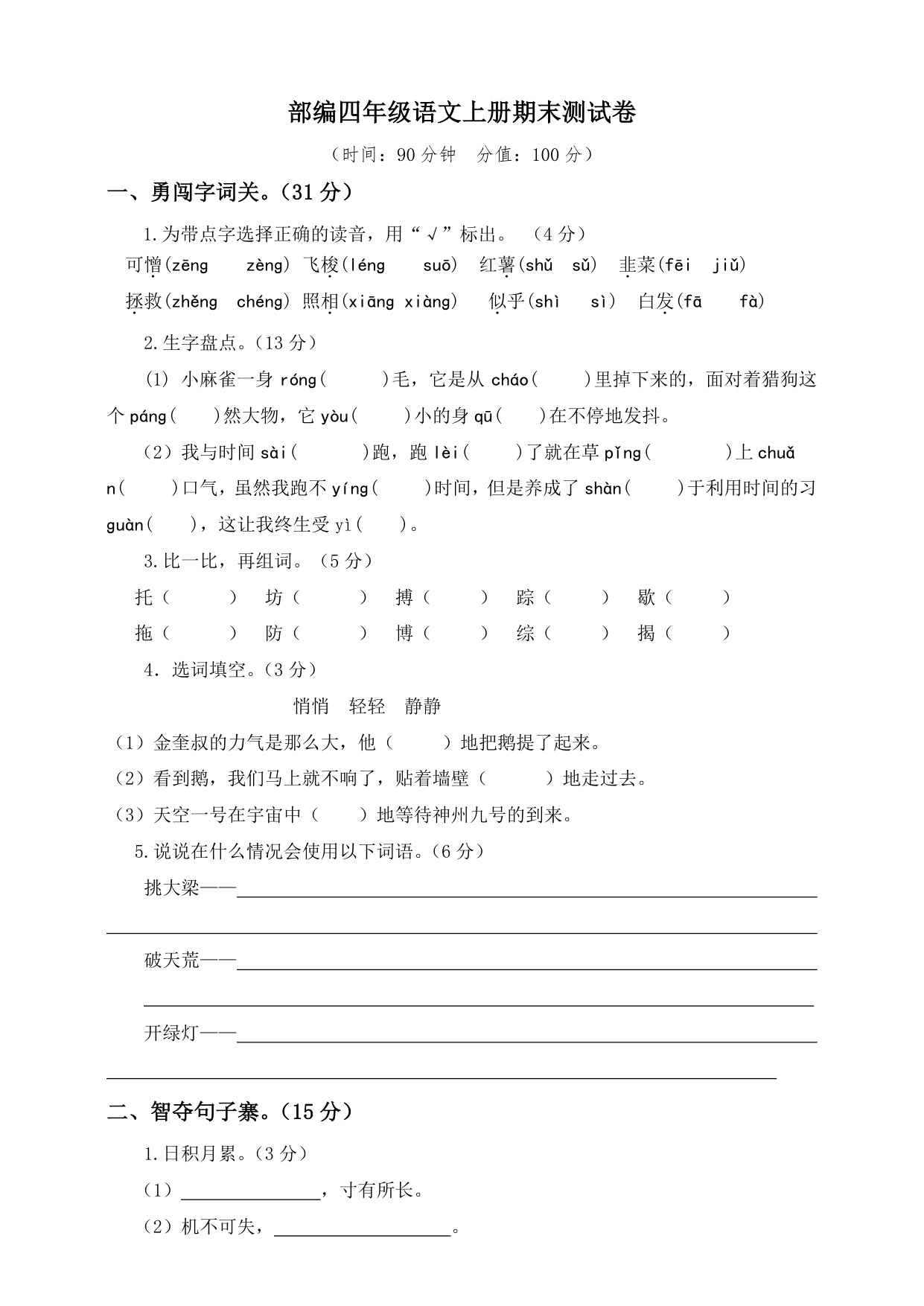 下一篇:语文四年级上册期末测试卷4(含答案)