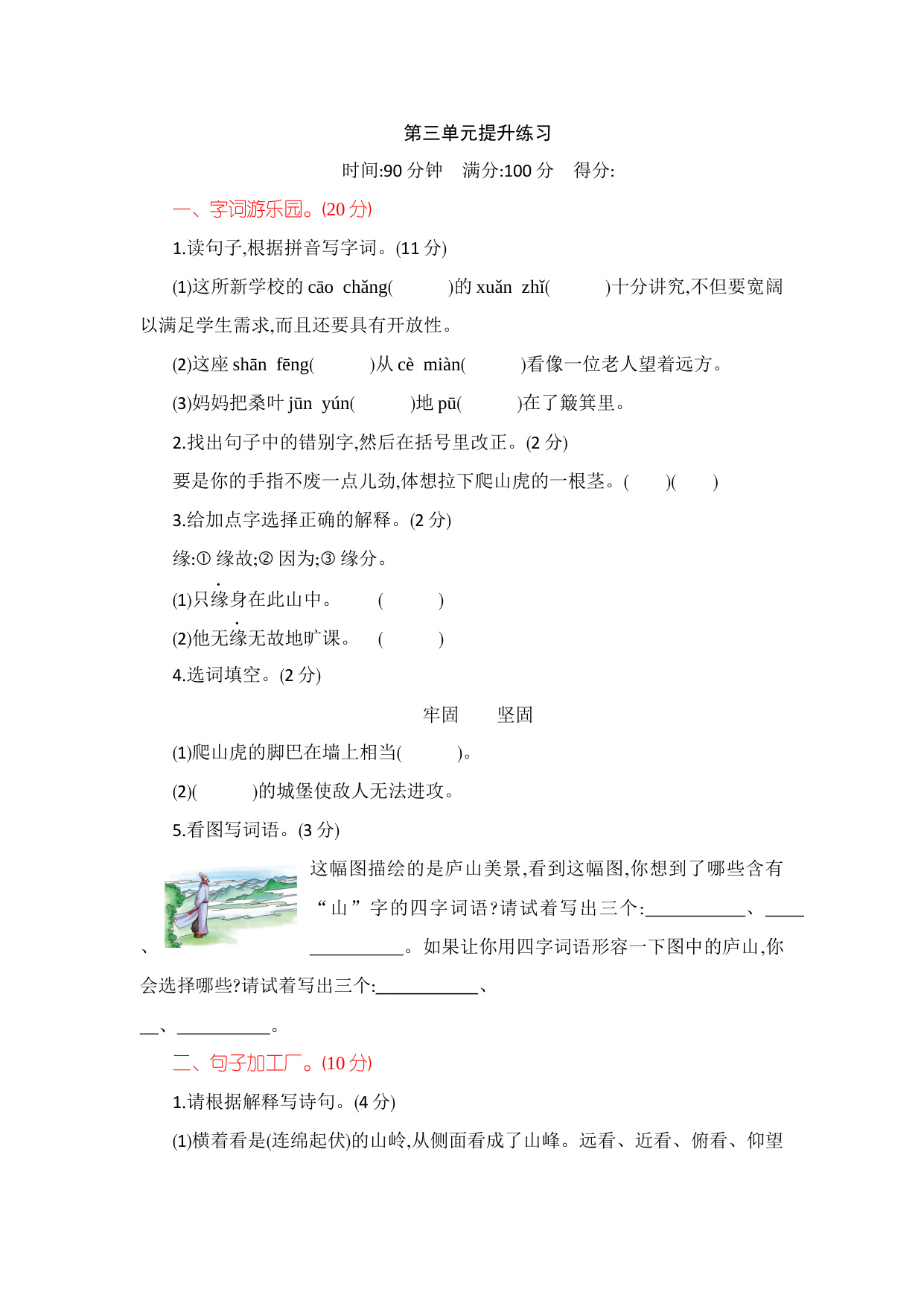 上一篇:部编版四年级语文上册-第七单元提升练习