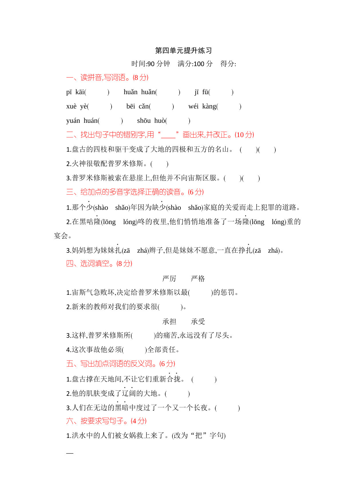 上一篇:部编版四年级语文上册-第六单元提升练习