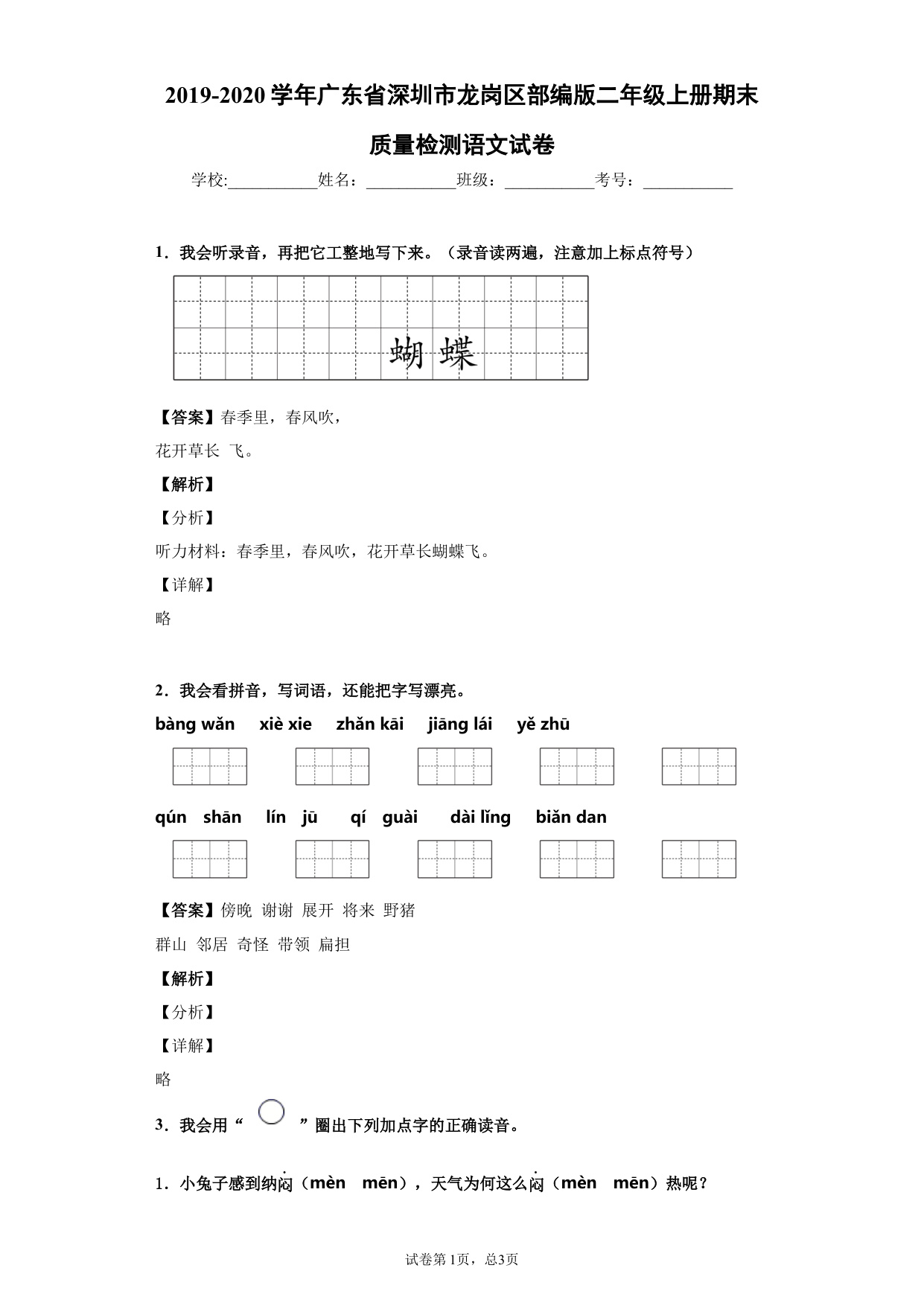 广东省深圳市龙岗区部编版二年级上册期末质量检测语文试卷 资料为Word格式,请下载后使用相应软件打开。