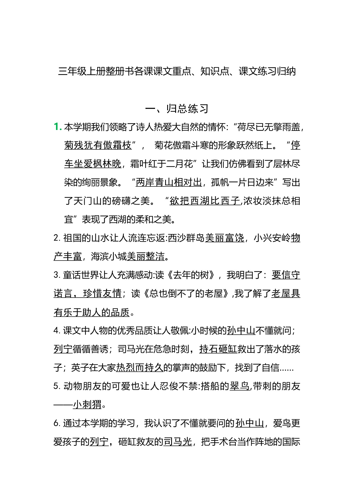 部编版三年级(上册)语文期末:整册课文重点、知识点、课文练习归纳 资料为Word格式,请下载后使用相应软件打开。