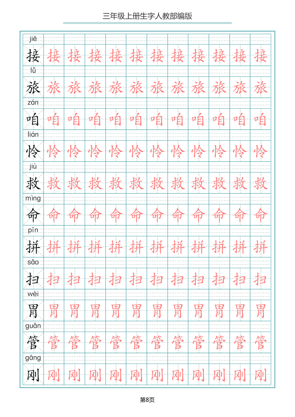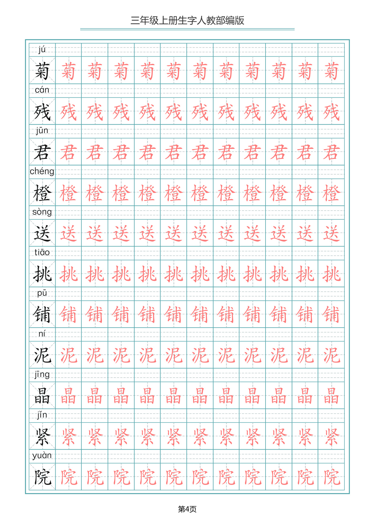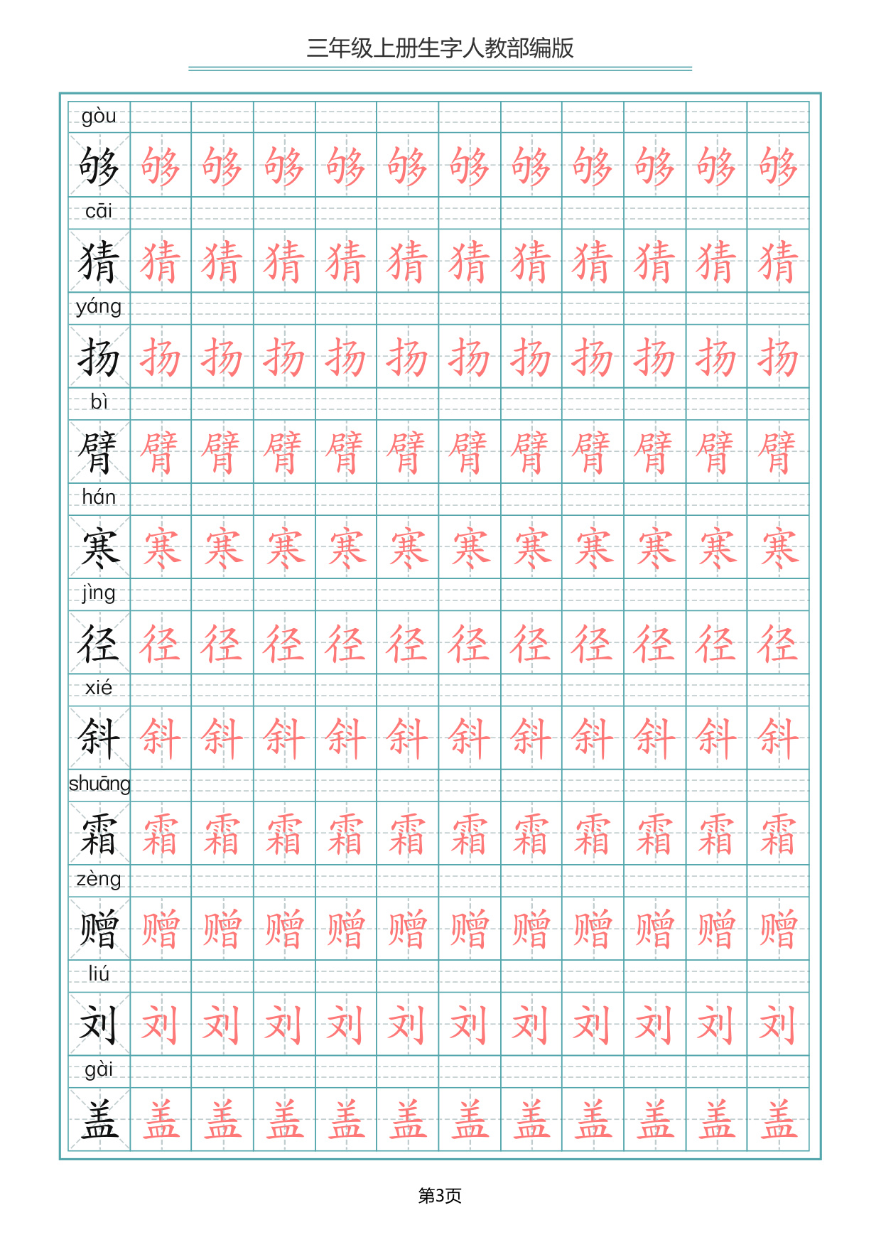 下一篇:小学三年级上册语文写字表生字笔顺描红字帖