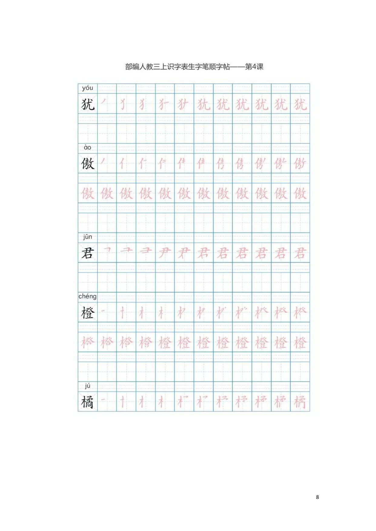 上一篇:部编版三年级(上册)语文写字表生字笔顺描红字帖
