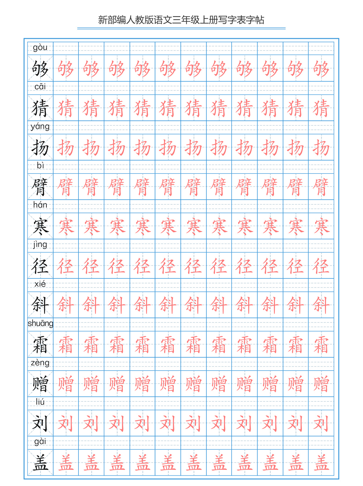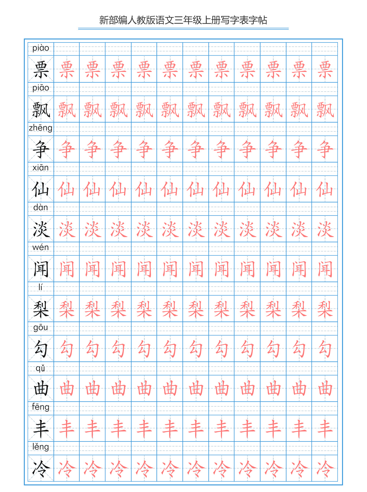 上一篇:部编版小学三年级上册语文词语表描红练习