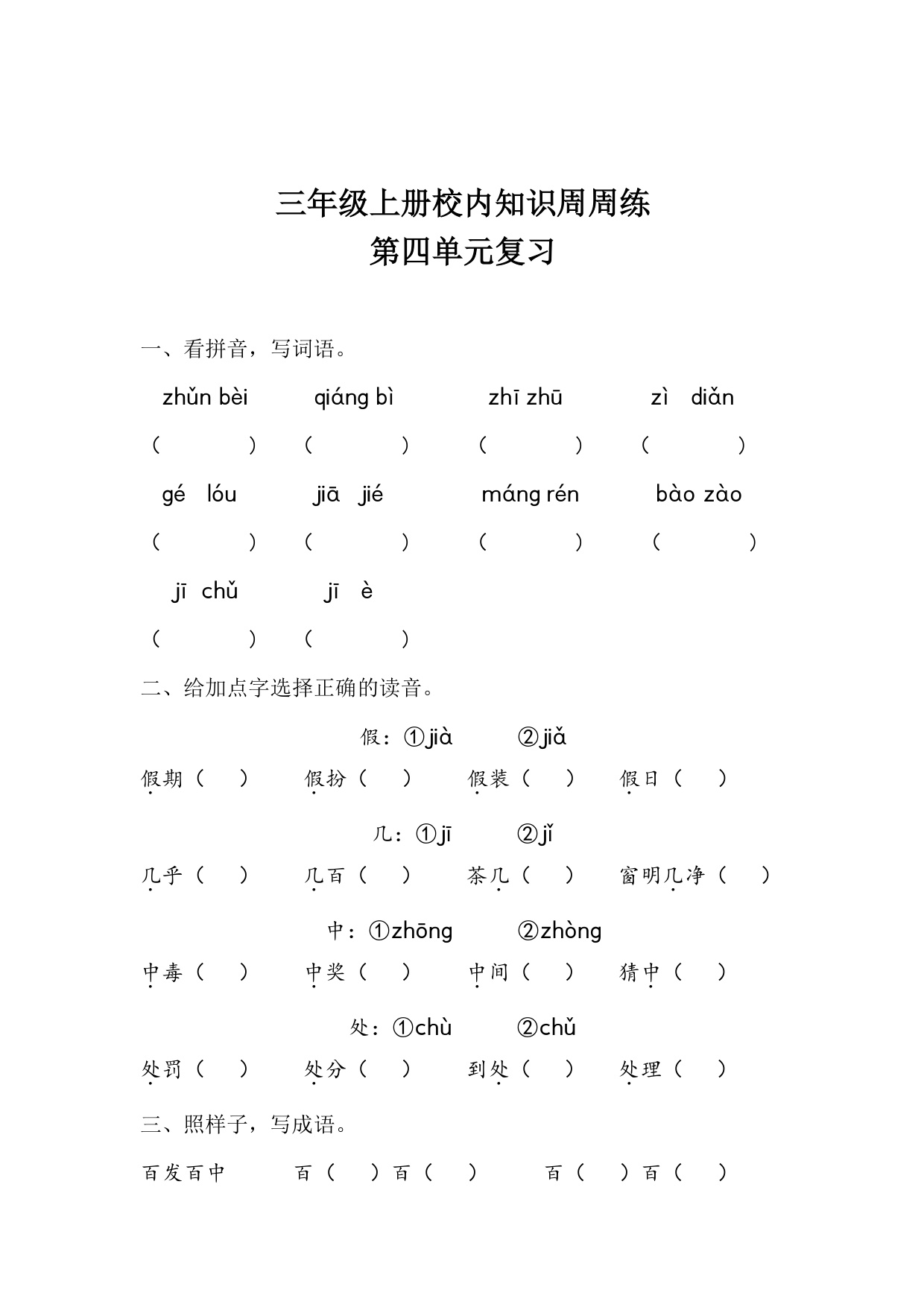 下一篇:【语文基本功训练营】—三年级上册校内知识周周练第4单元预习解析(部编版)