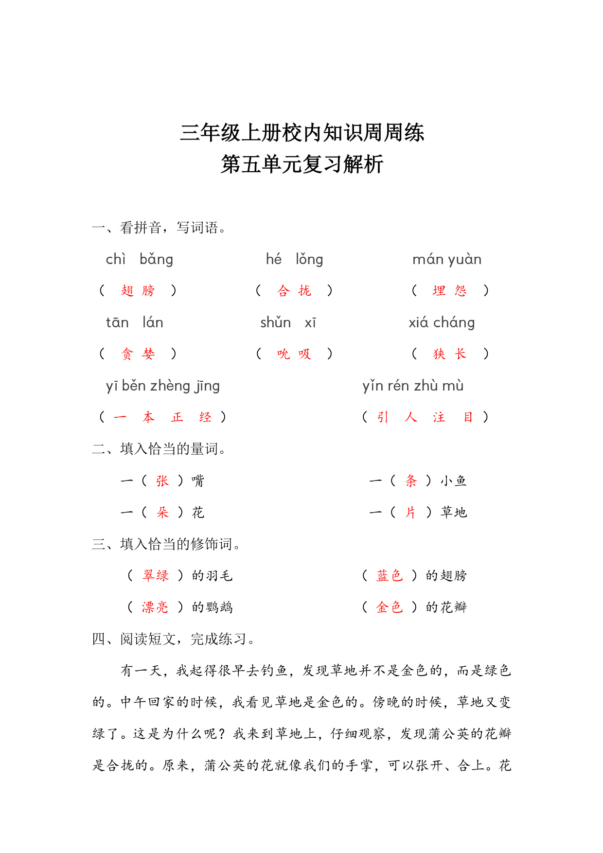 下一篇:【语文基本功训练营】—三年级上册校内知识周周练第5单元复习(部编版)