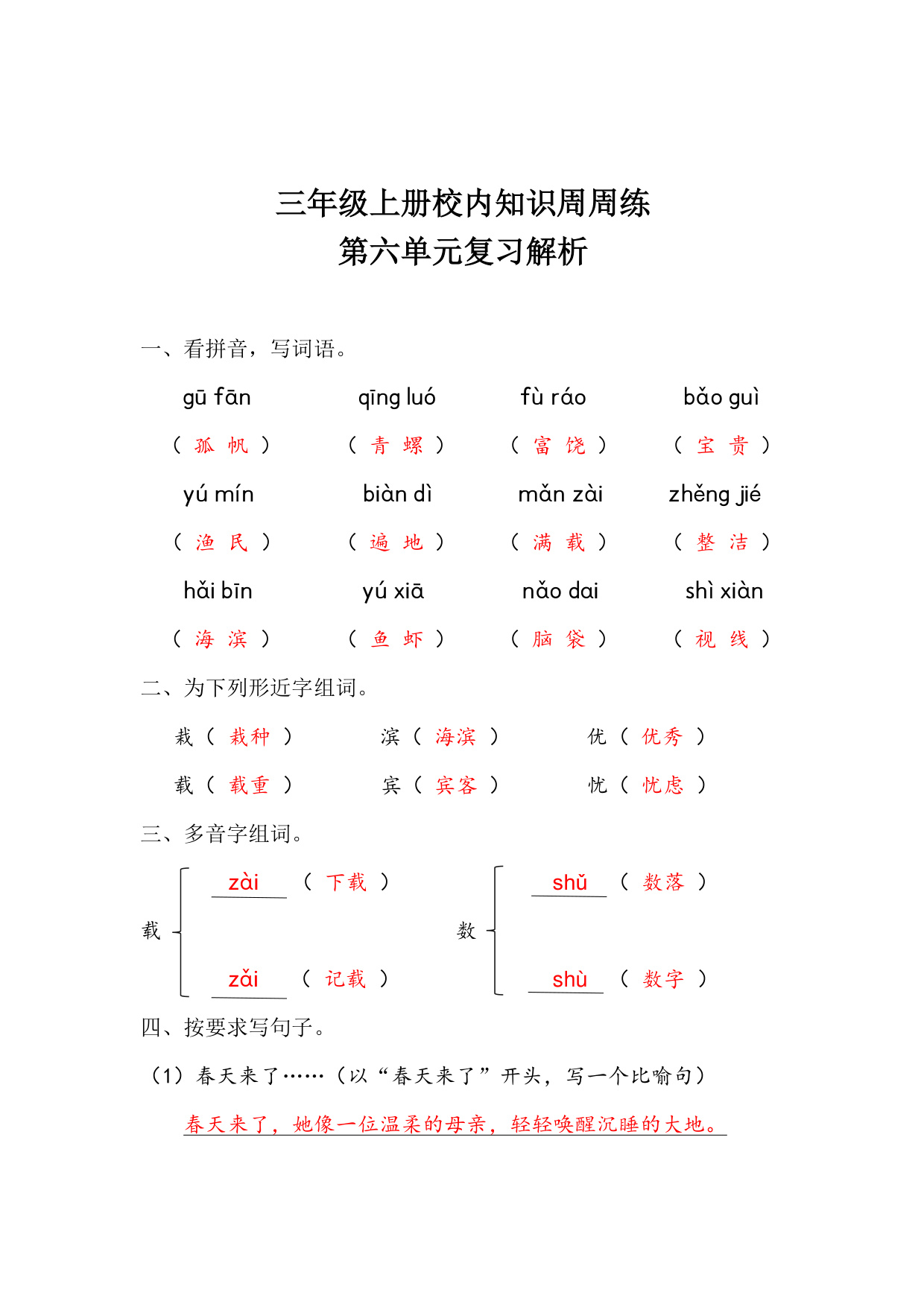 下一篇:【语文基本功训练营】—三年级上册校内知识周周练第6单元复习(部编版)