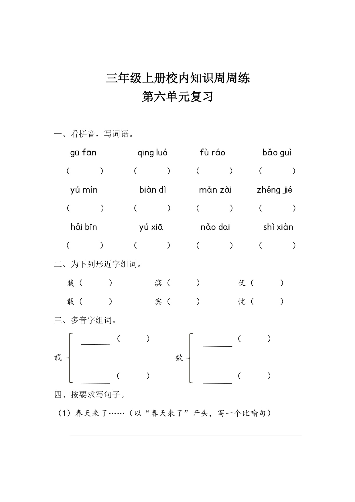 下一篇:【语文基本功训练营】—三年级上册校内知识周周练第6单元预习解析(部编版)