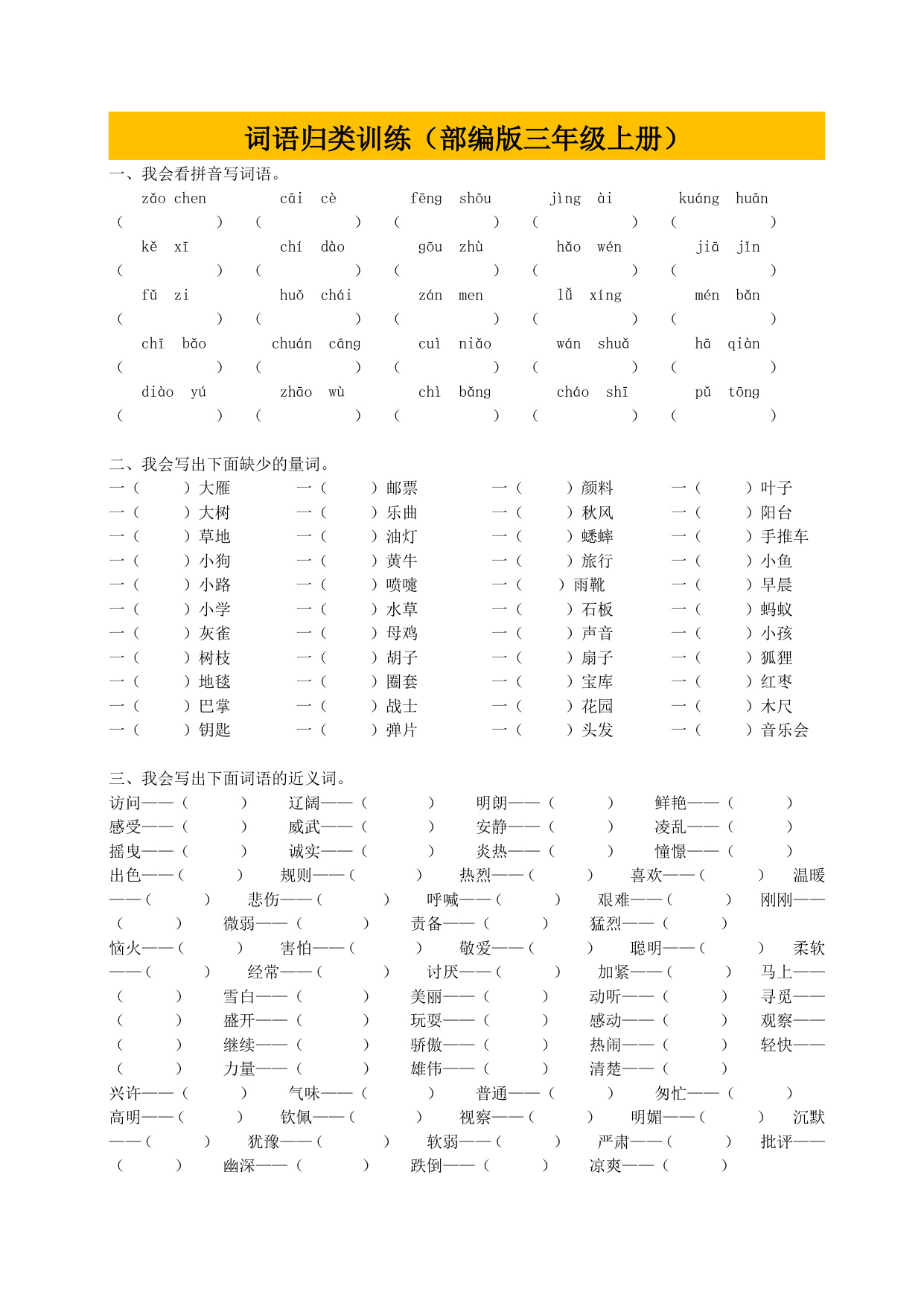 上一篇:三年级上册语文期末复习题:缩句强化练习