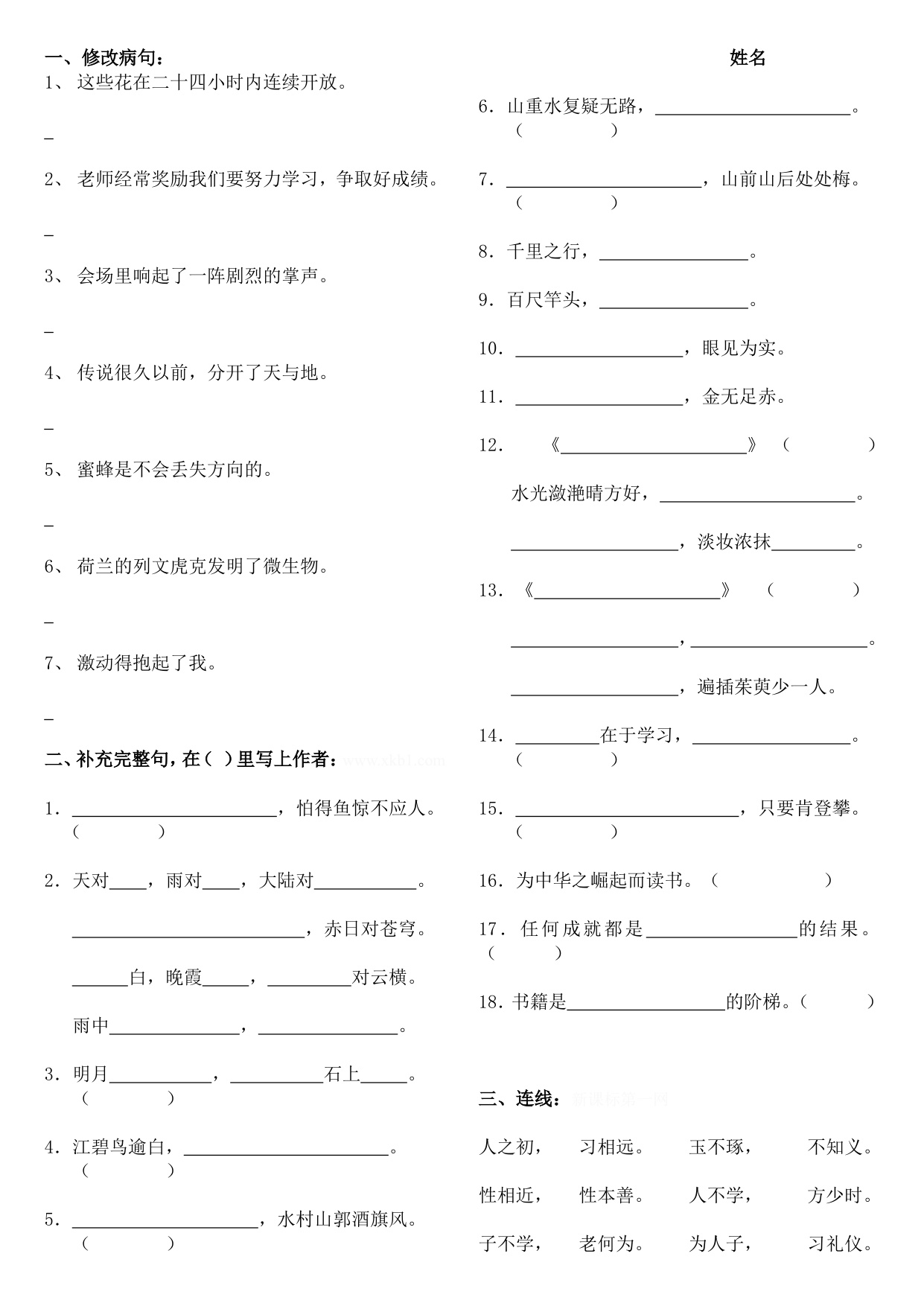 三年级语文上册专项复习分类训练:读读背背填空复习题