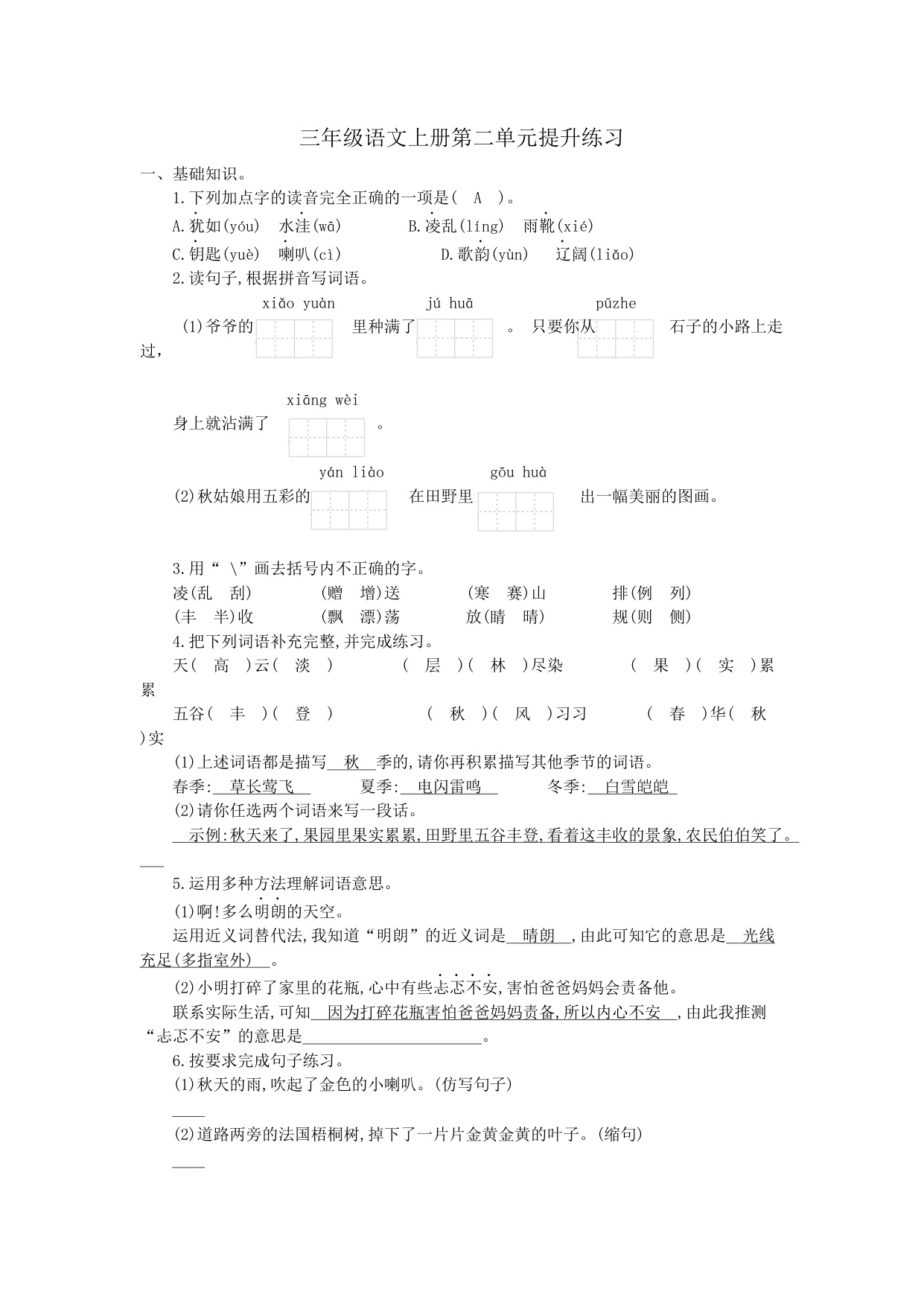 下一篇:三年级上册试题卷含答案:语文第二单元检测卷-2