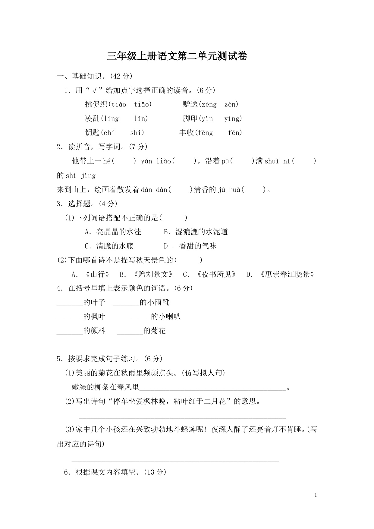 上一篇:三年级上册试题卷含答案:语文第二单元检测卷-1
