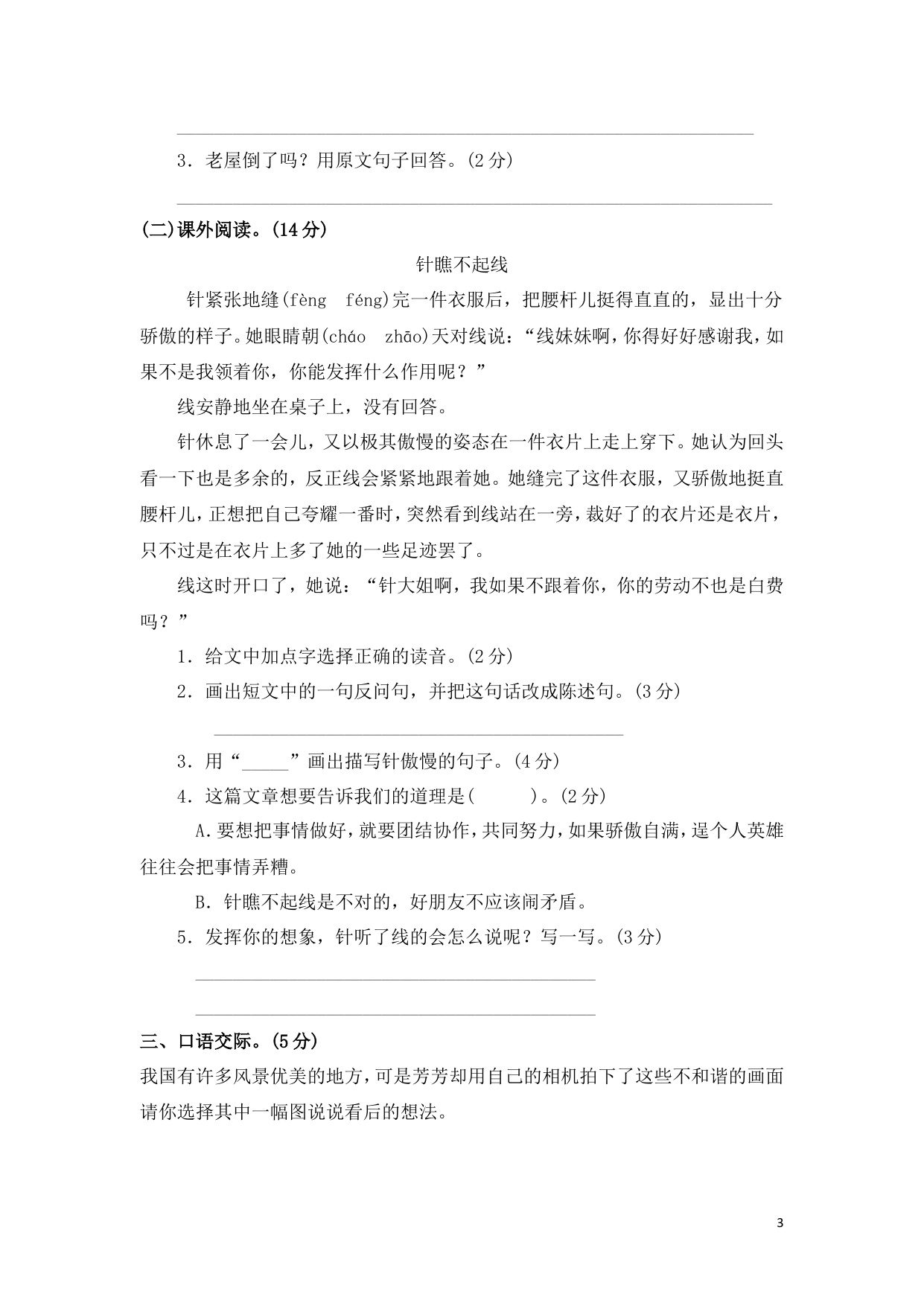 上一篇:三年级上册试题卷含答案:语文第六单元测试卷-2