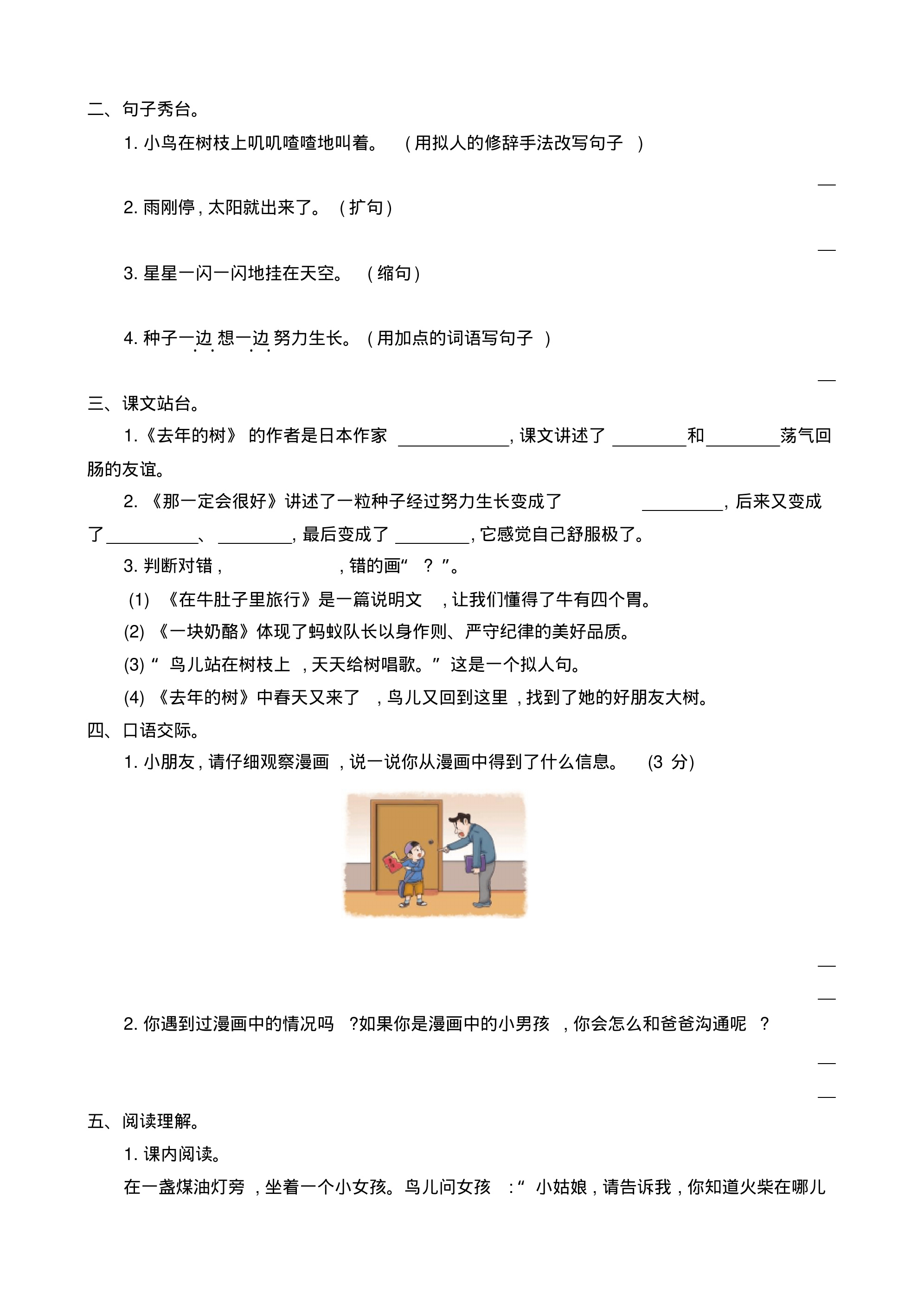 上一篇:三年级上册试题卷含答案:语文第四单元测试卷-2
