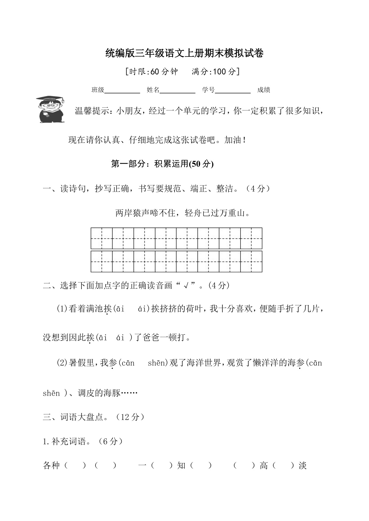 下一篇:语文期末复习:三年级上册期末测试卷2含参考答案