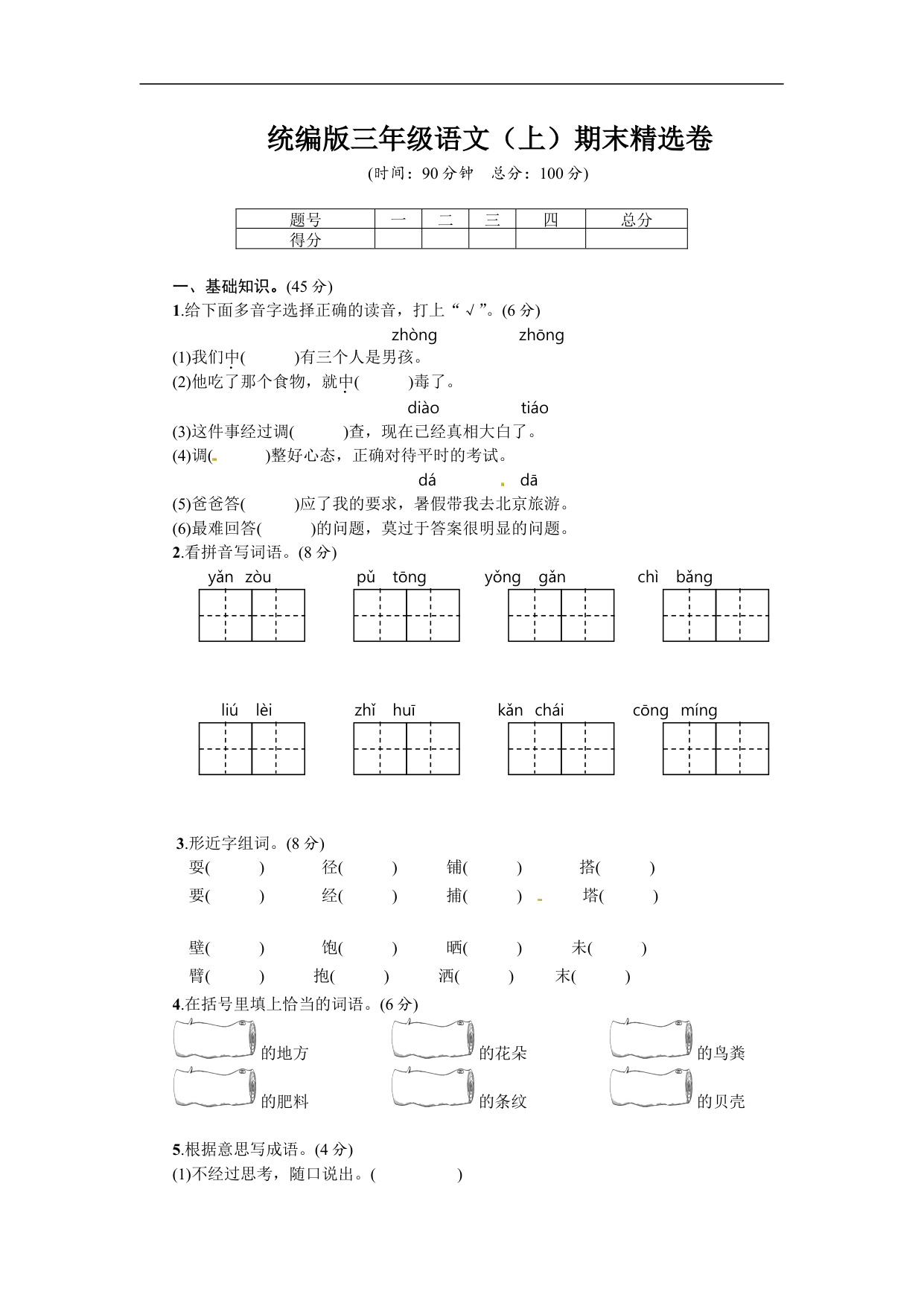 下一篇:语文期末复习:三年级上册期末测试卷9含答案