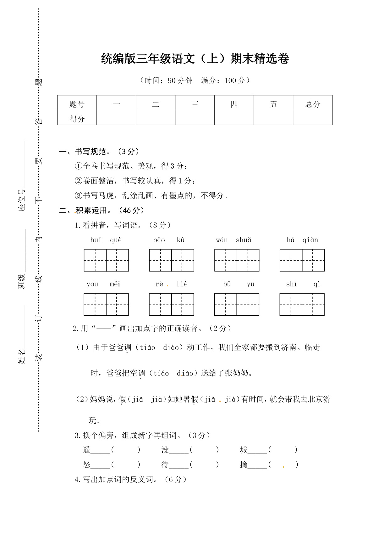 下一篇:语文期末复习:三年级上册末测试卷13含答案