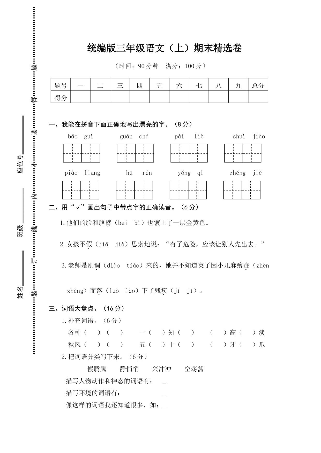 上一篇:语文期末复习:三年级上册末测试卷16含答案
