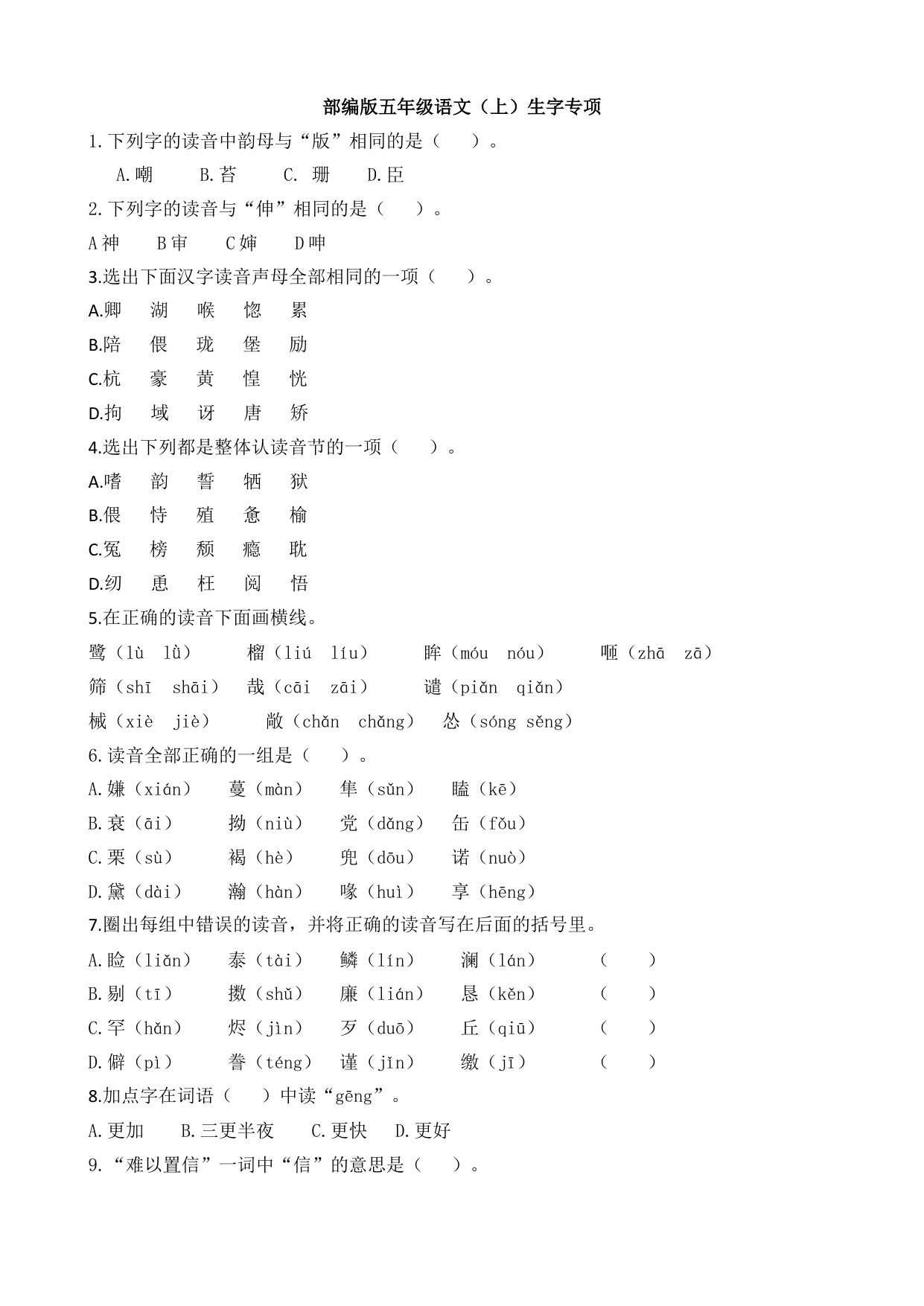 下一篇:【部编版】语文5年级(上册)专项训练——词语(含答案)