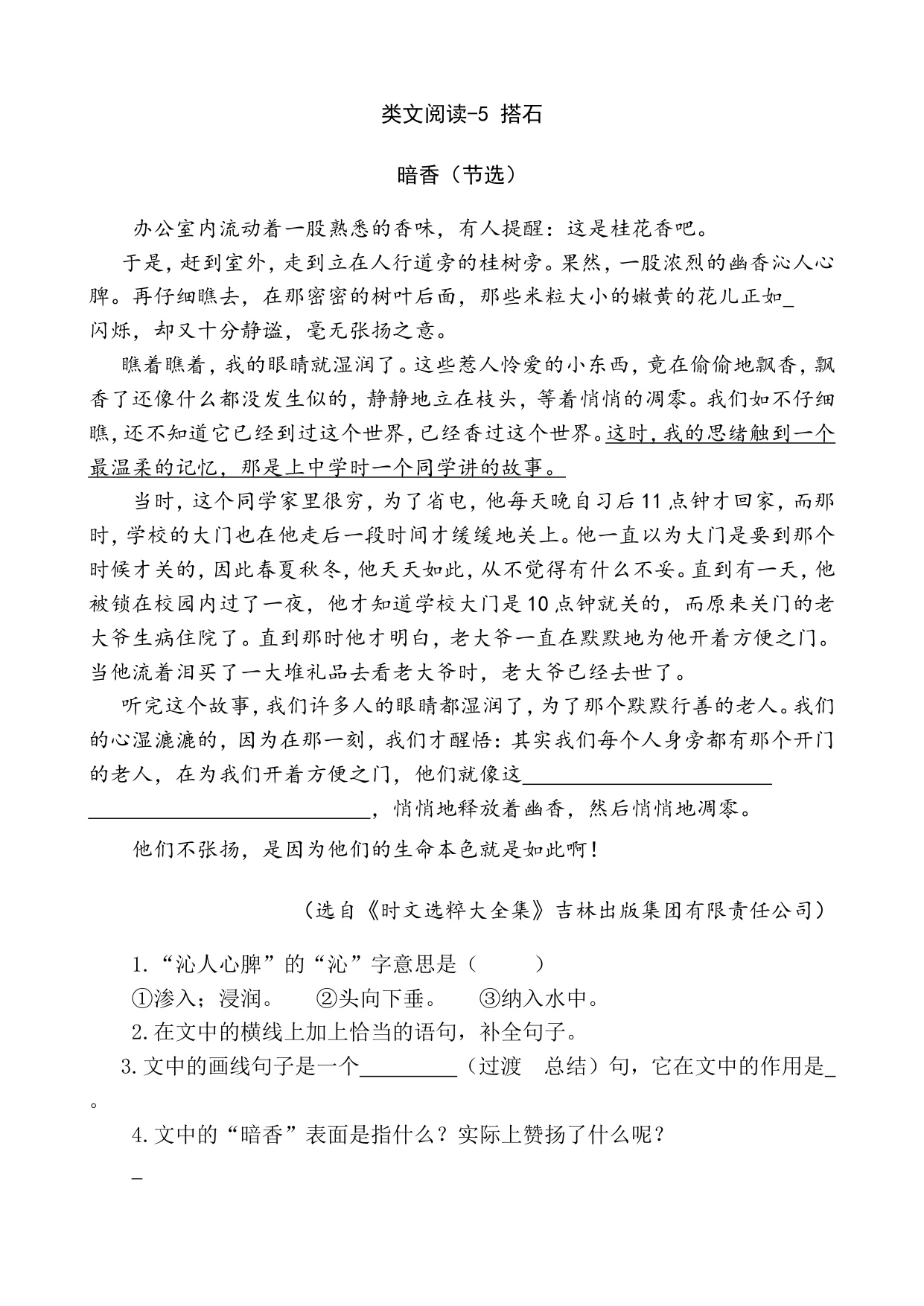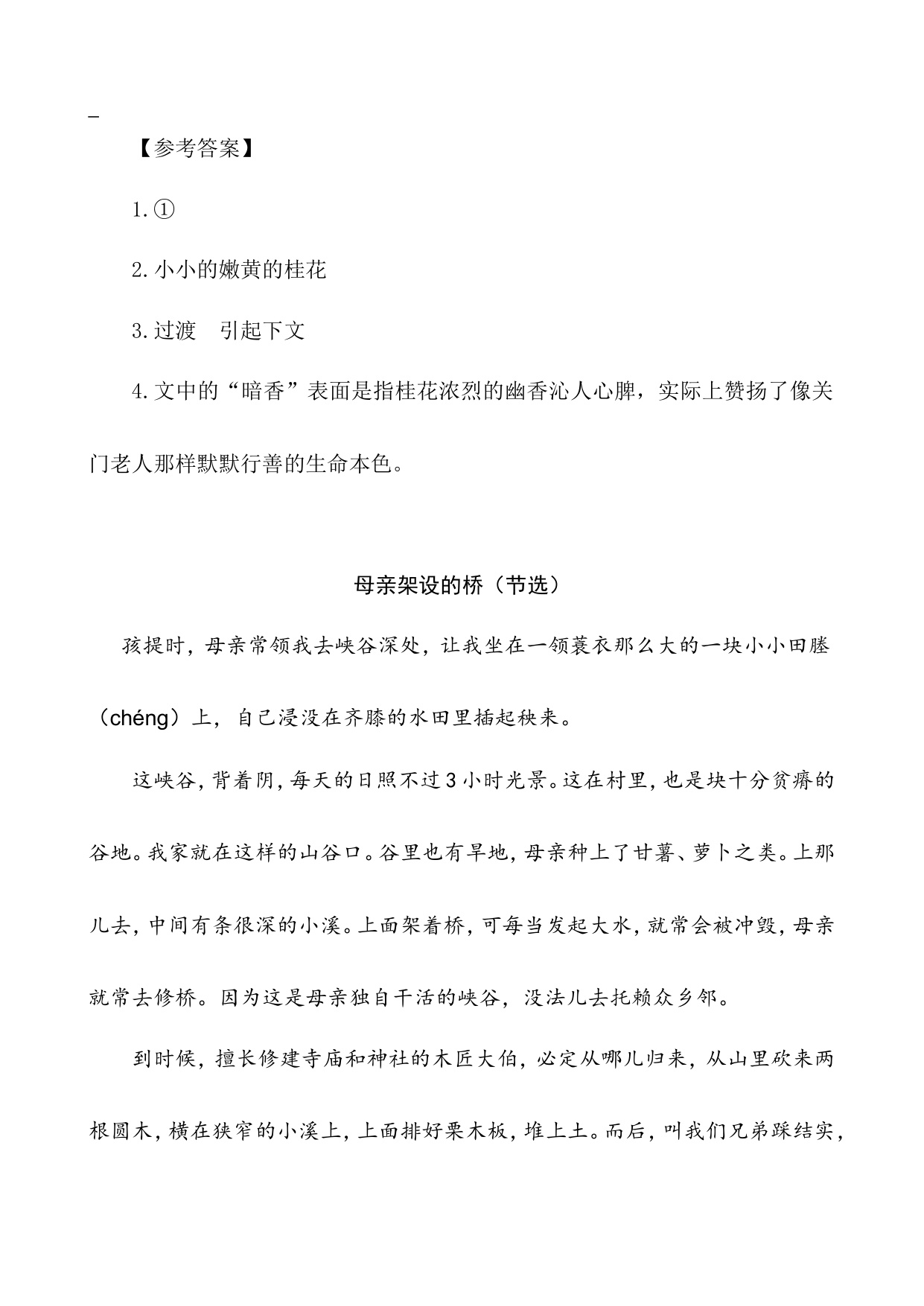 上一篇:部编版小学五年级上册类文阅读理解练习题含答案-3 桂花雨