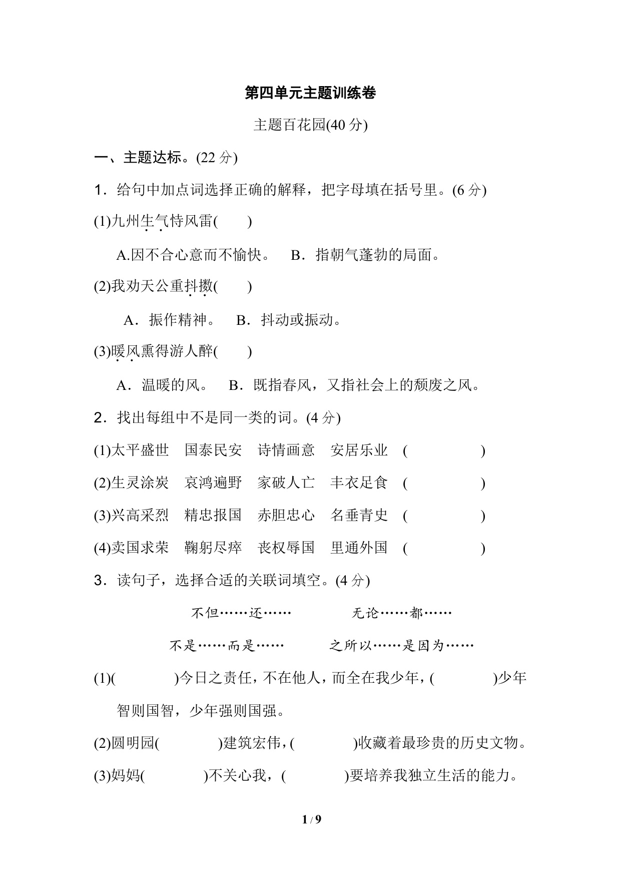 下一篇:五上语文第四单元 达标检测卷(九)