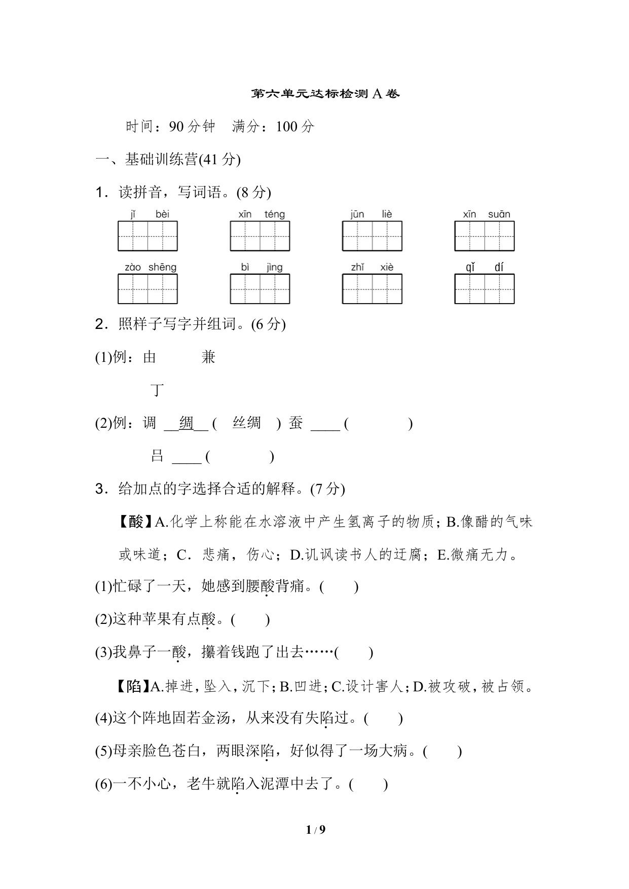 下一篇:统编版小学语文五年级上册第六单元 达标检测B卷