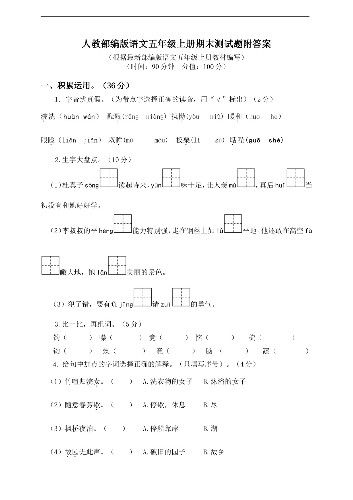 下一篇:五年级语文上册期末试卷及答案