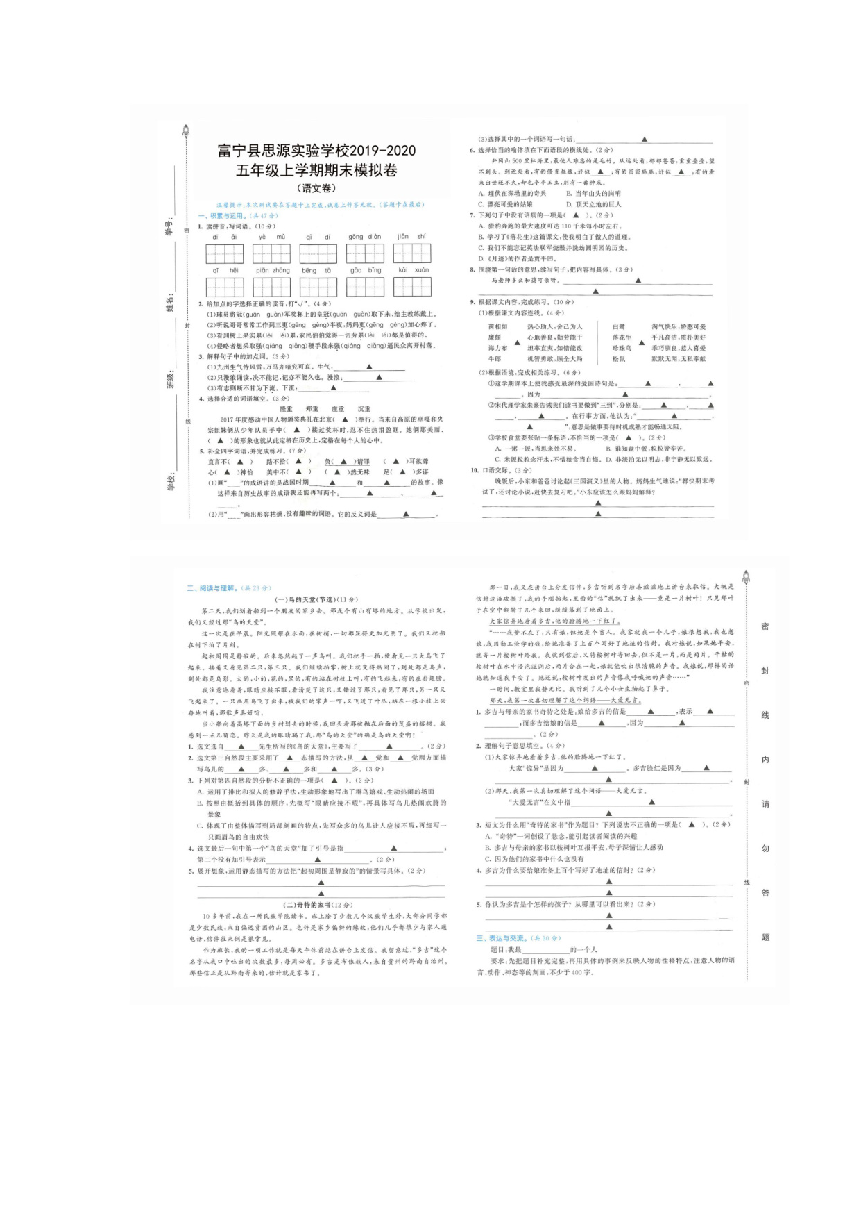 上一篇:统部编版五年级上册语文试卷