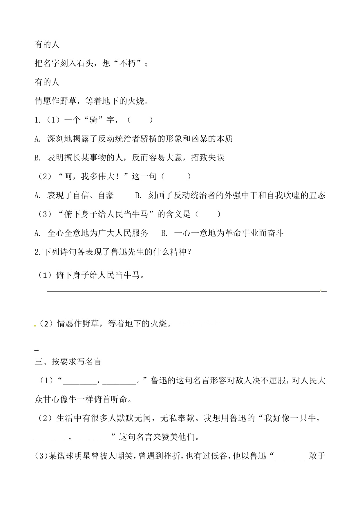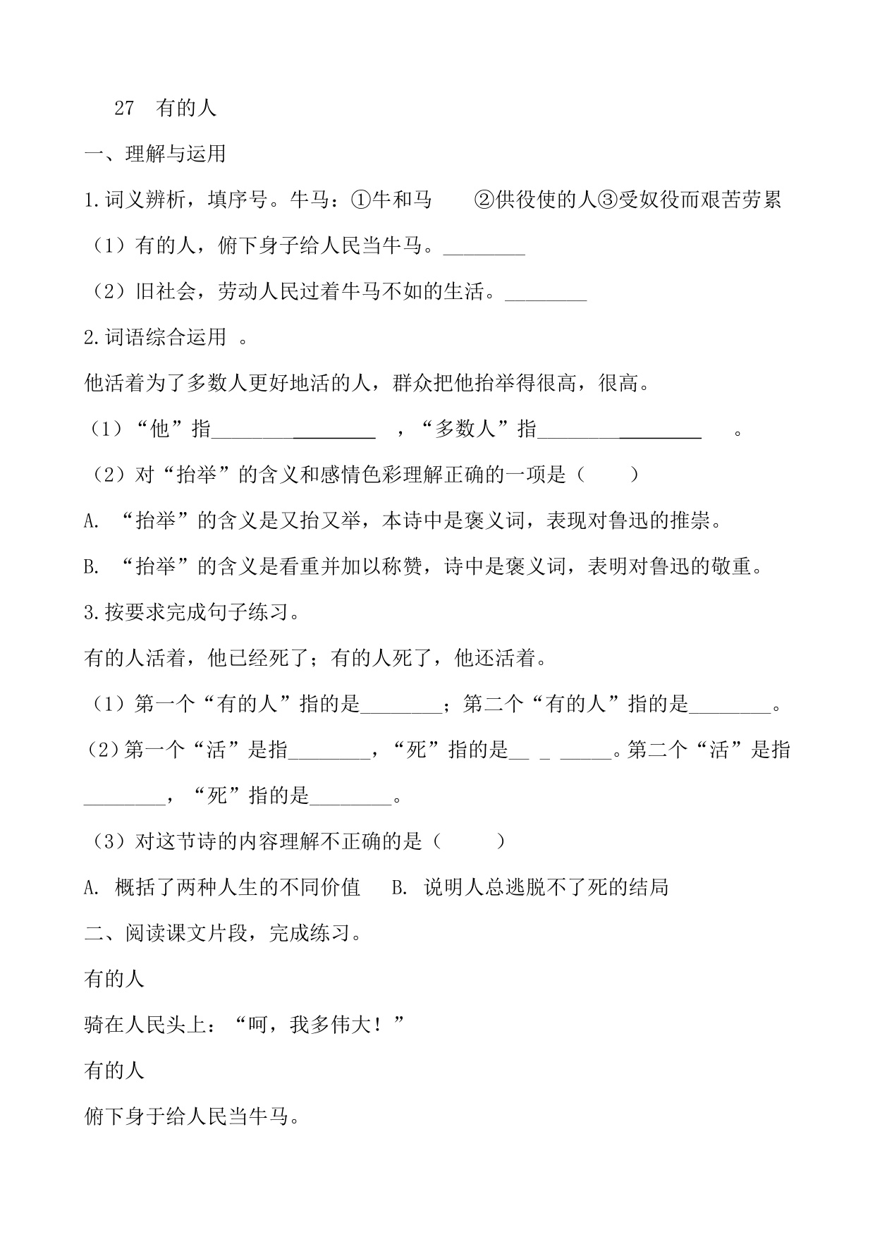 六年级上册语文课时习题-27《有的人》 人教部编版 (含答案)