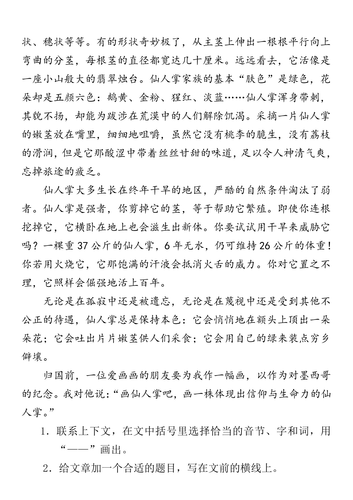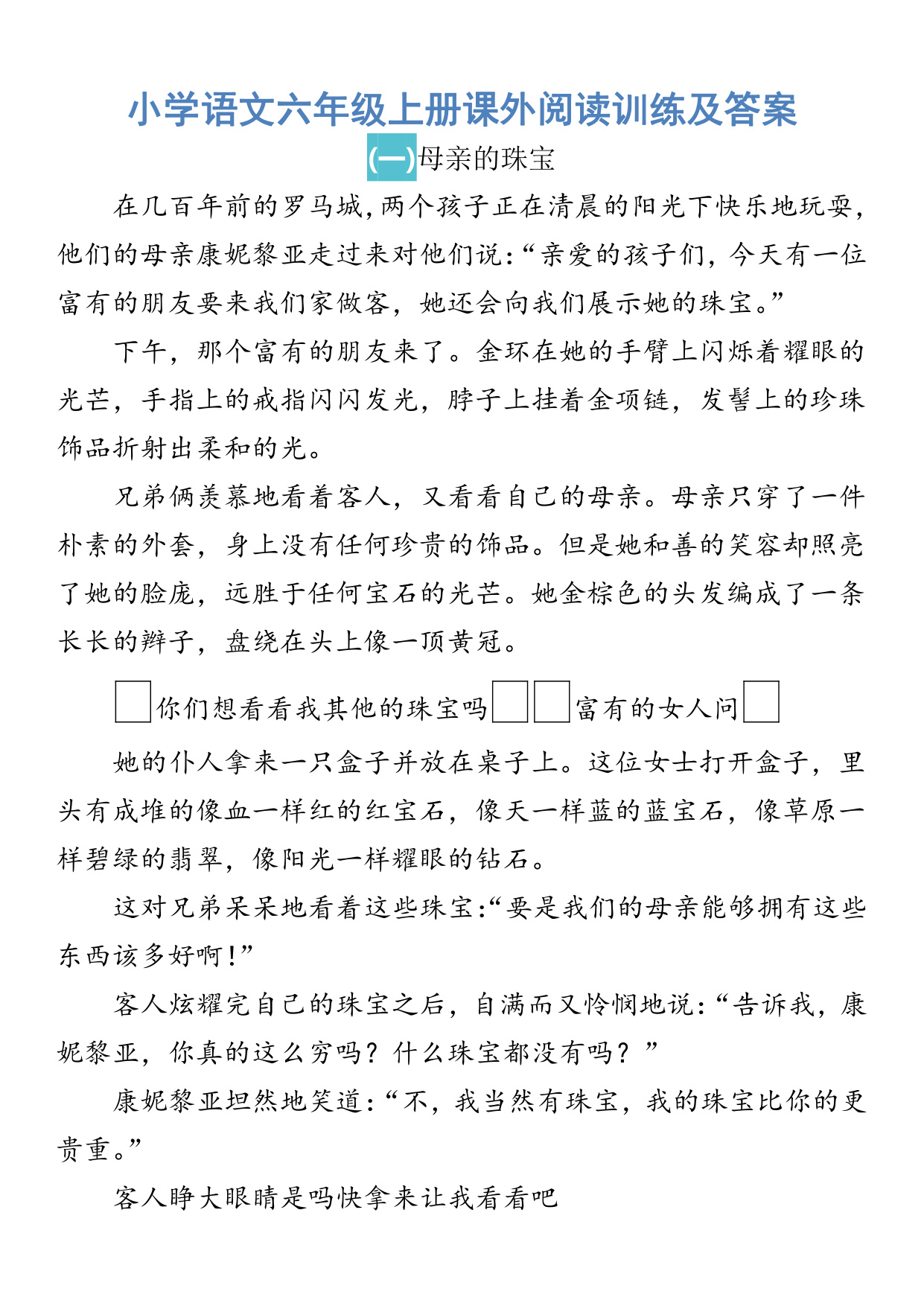 下一篇:小学语文六年级课外短文阅读理解练习及答案