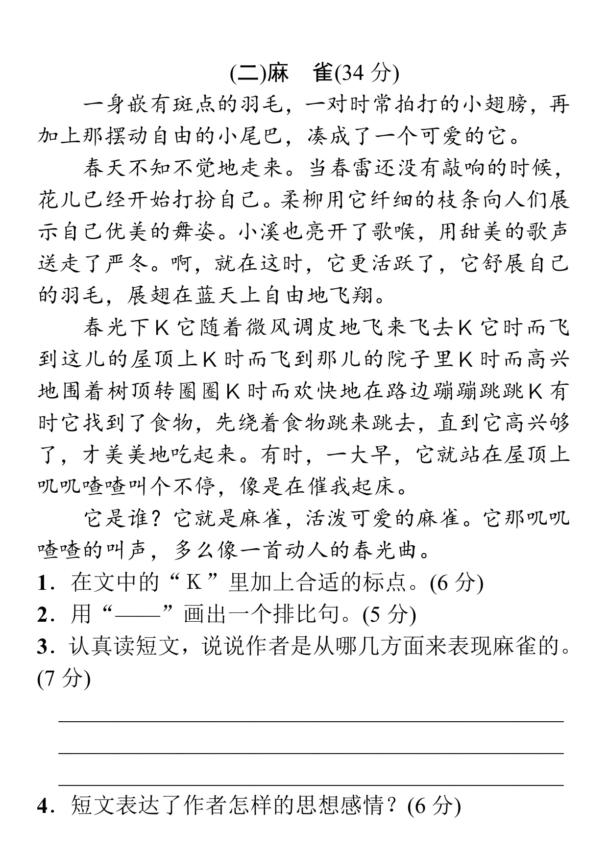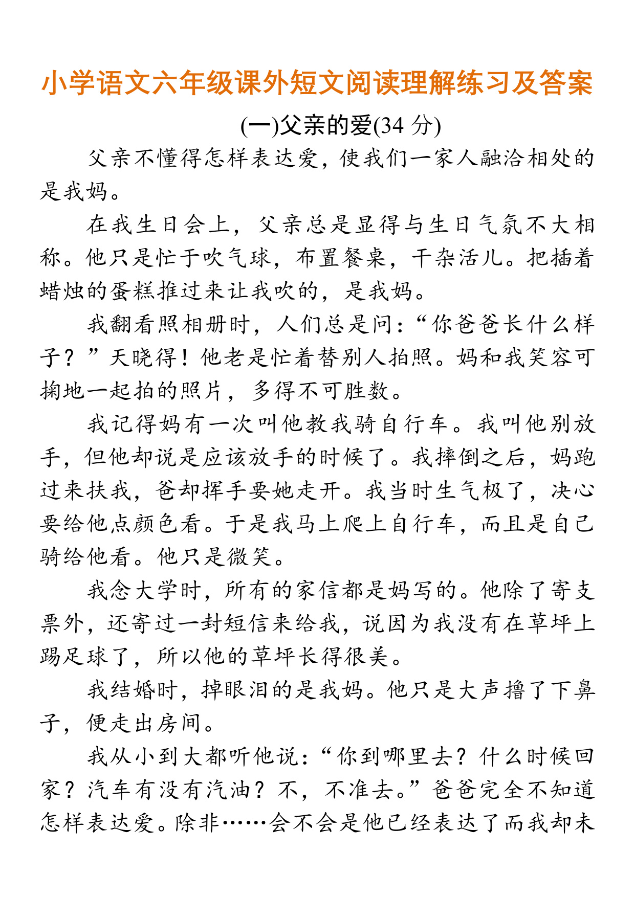 上一篇:小学语文六年级上册课外阅读训练及答案