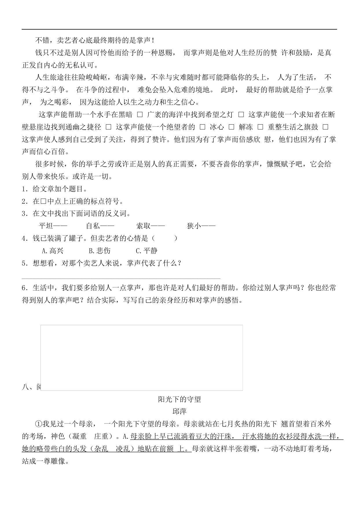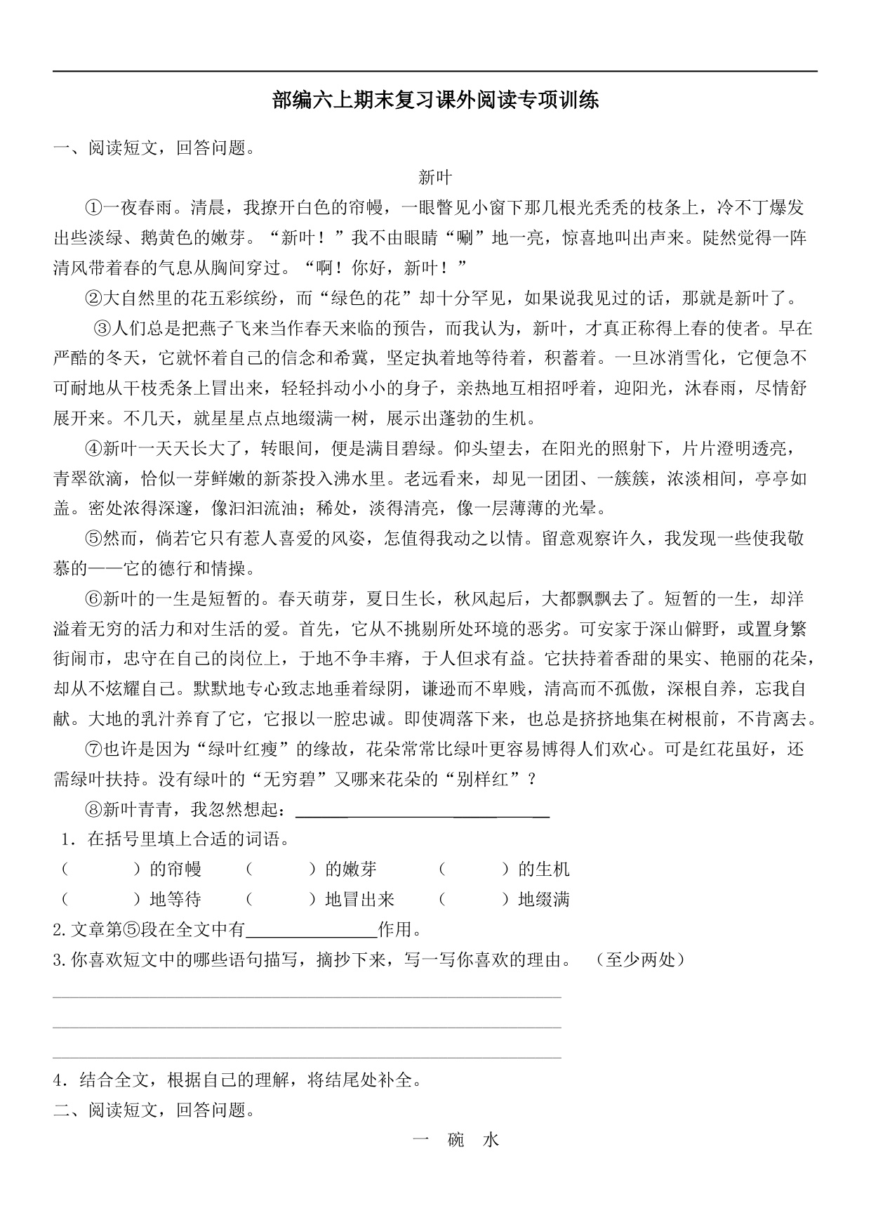 上一篇:统编版语文6年级(上册)专项训练——课内阅读(含答案)