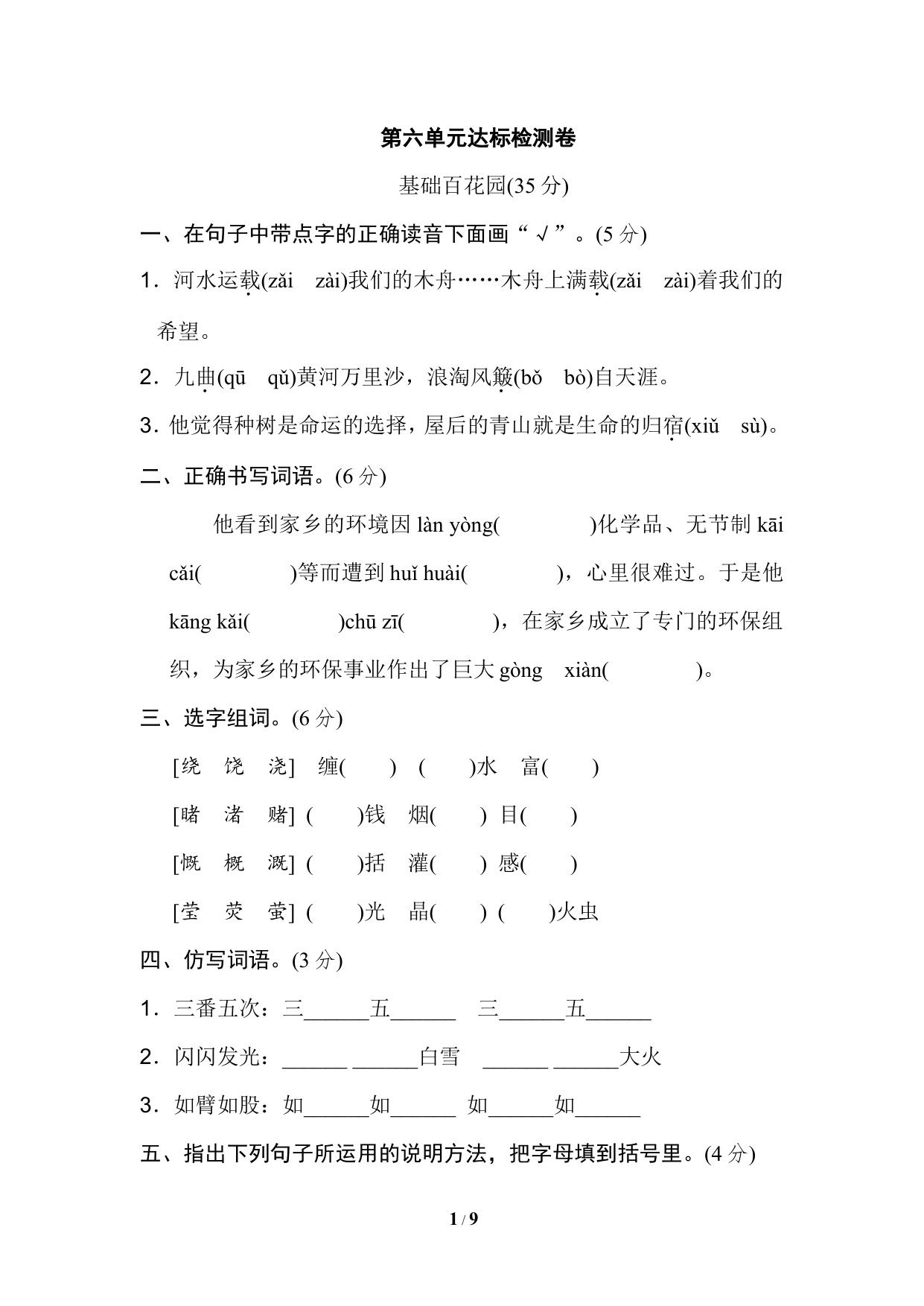 下一篇:统编版小学语文六年级上册第六单元 达标检测B卷