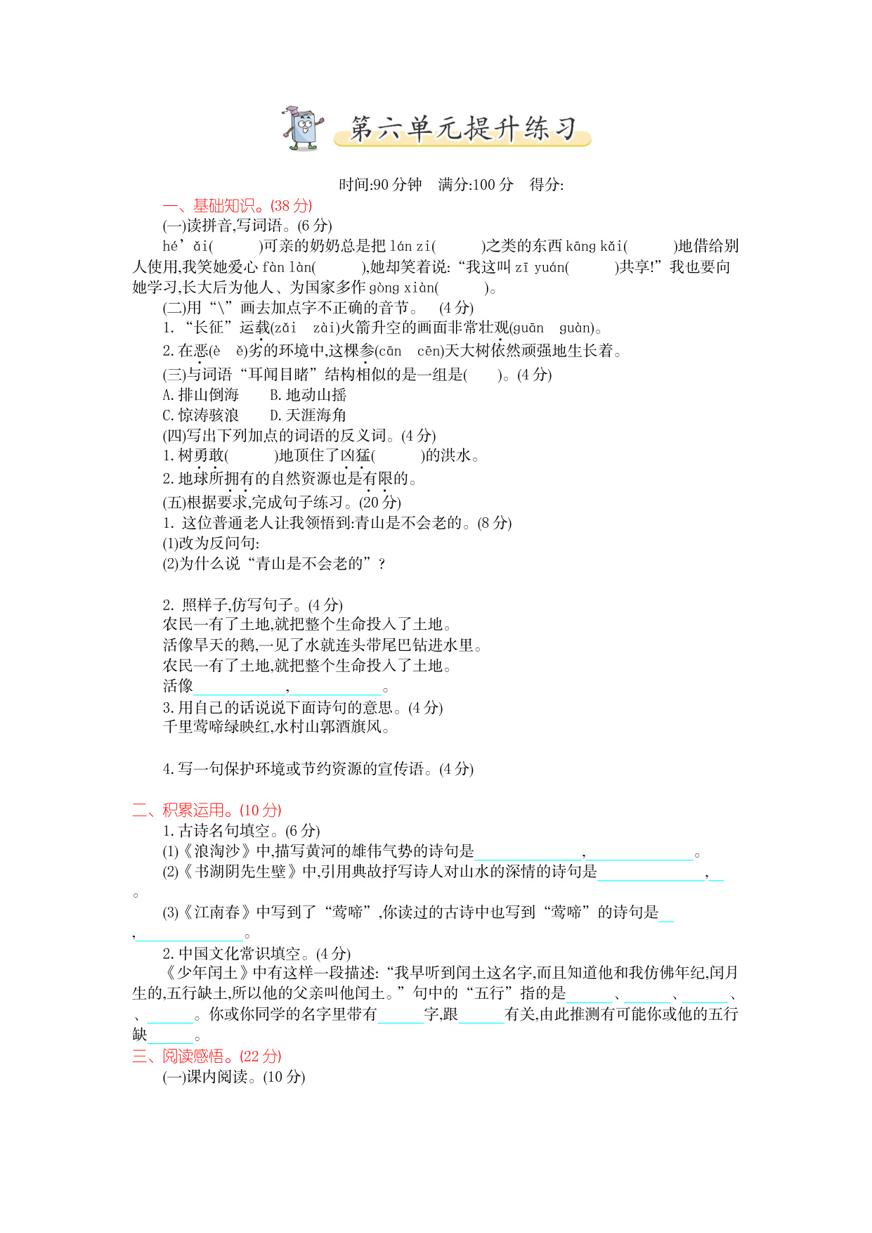 下一篇:统编版语文六年级上册第一单元主题突破卷