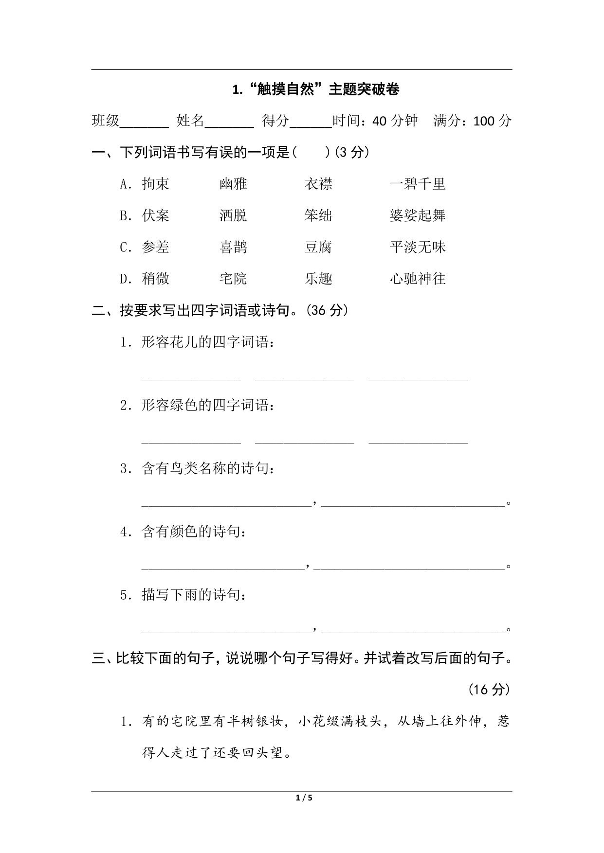 下一篇:统编版语文六年级上册第一单元主题训练卷