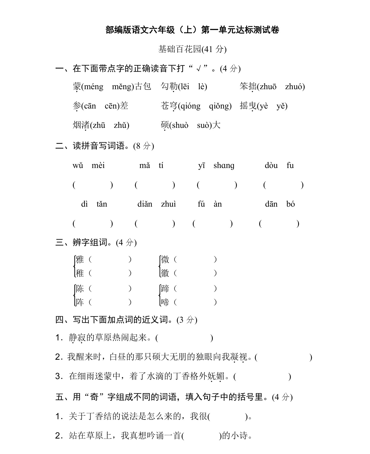 上一篇:统编版语文六年级上册第一单元达标测试A卷