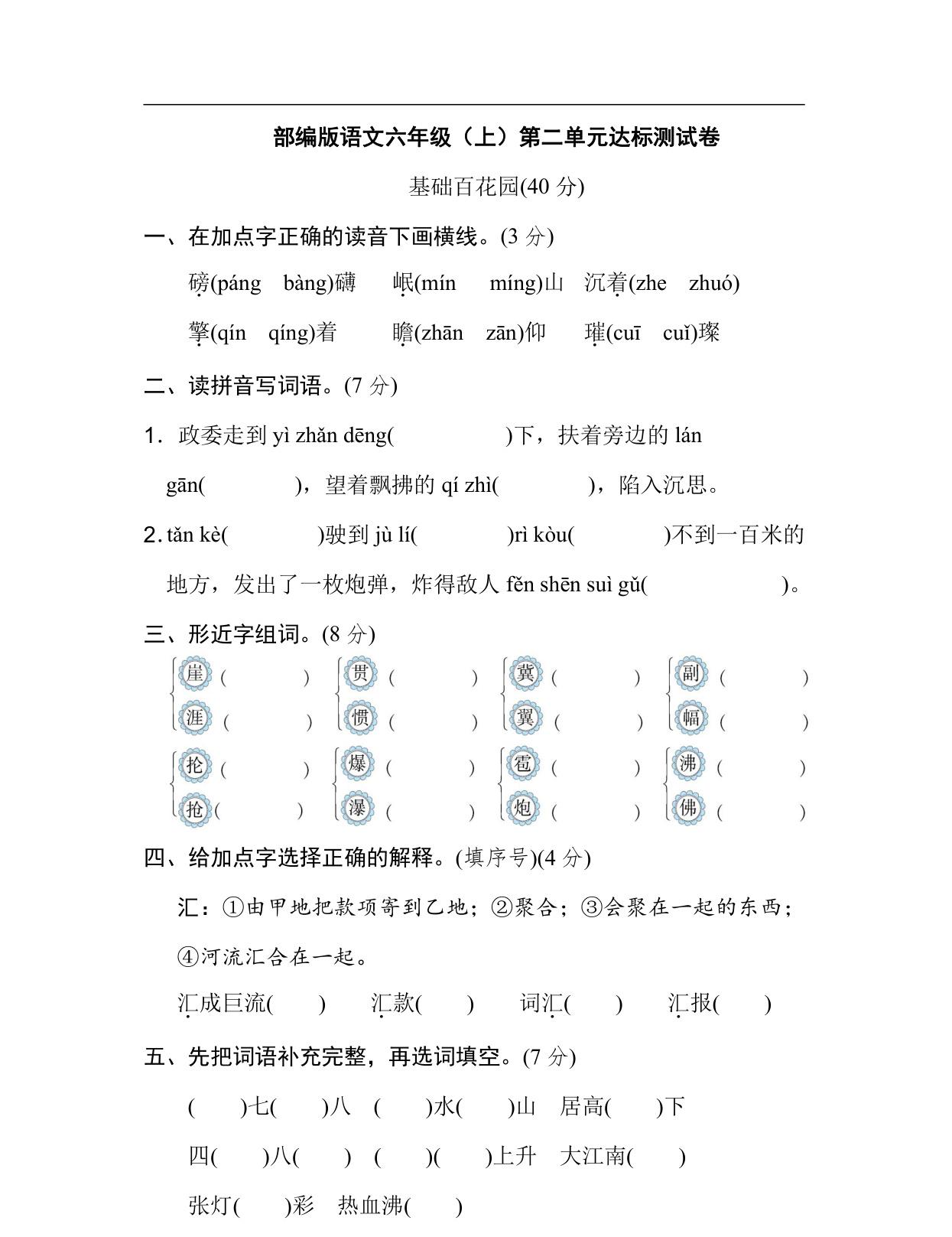 下一篇:统编版语文六年级上册第二单元达标测试卷3