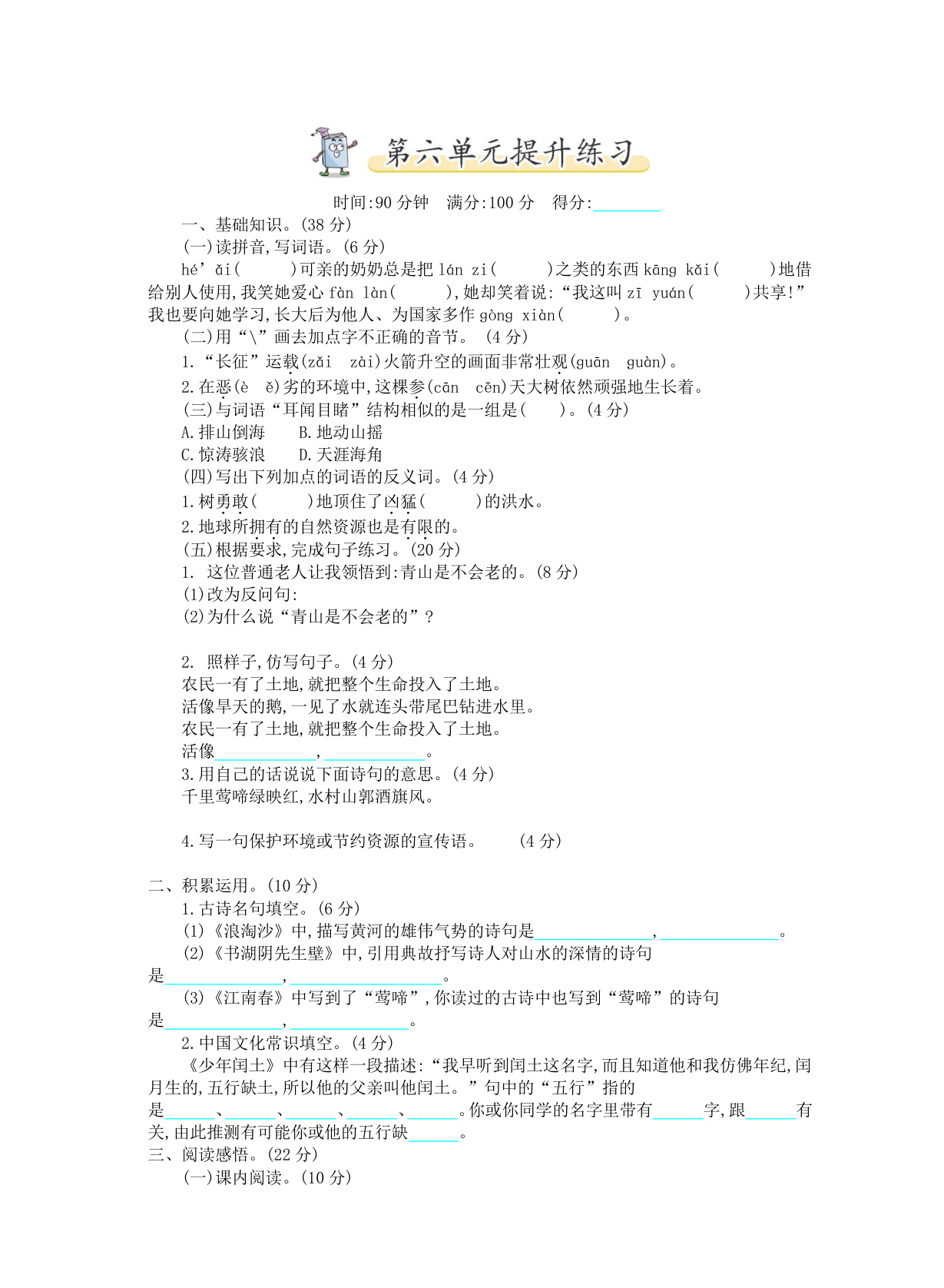 下一篇:统编语文六年级上册第6单元试卷 (2)