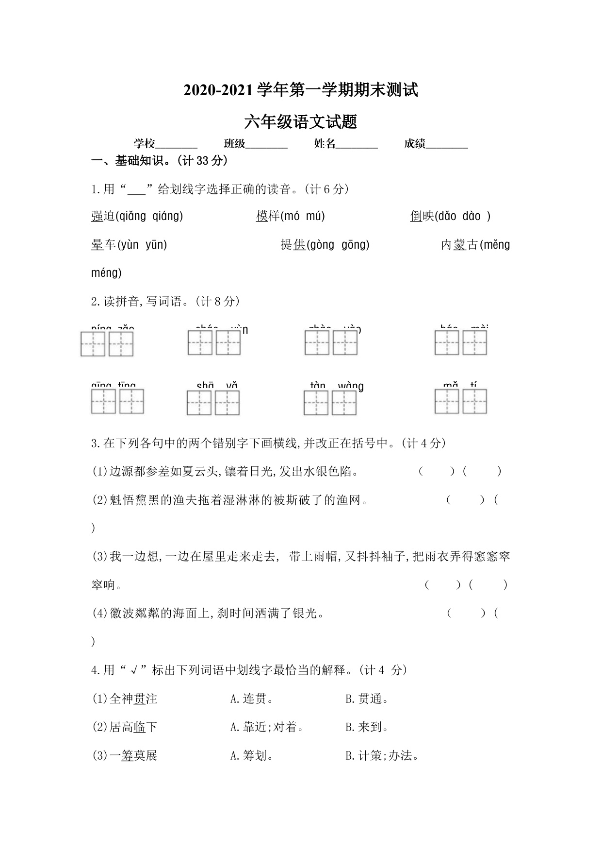上一篇:部编版六年级上册语文《期末测试卷》含答案