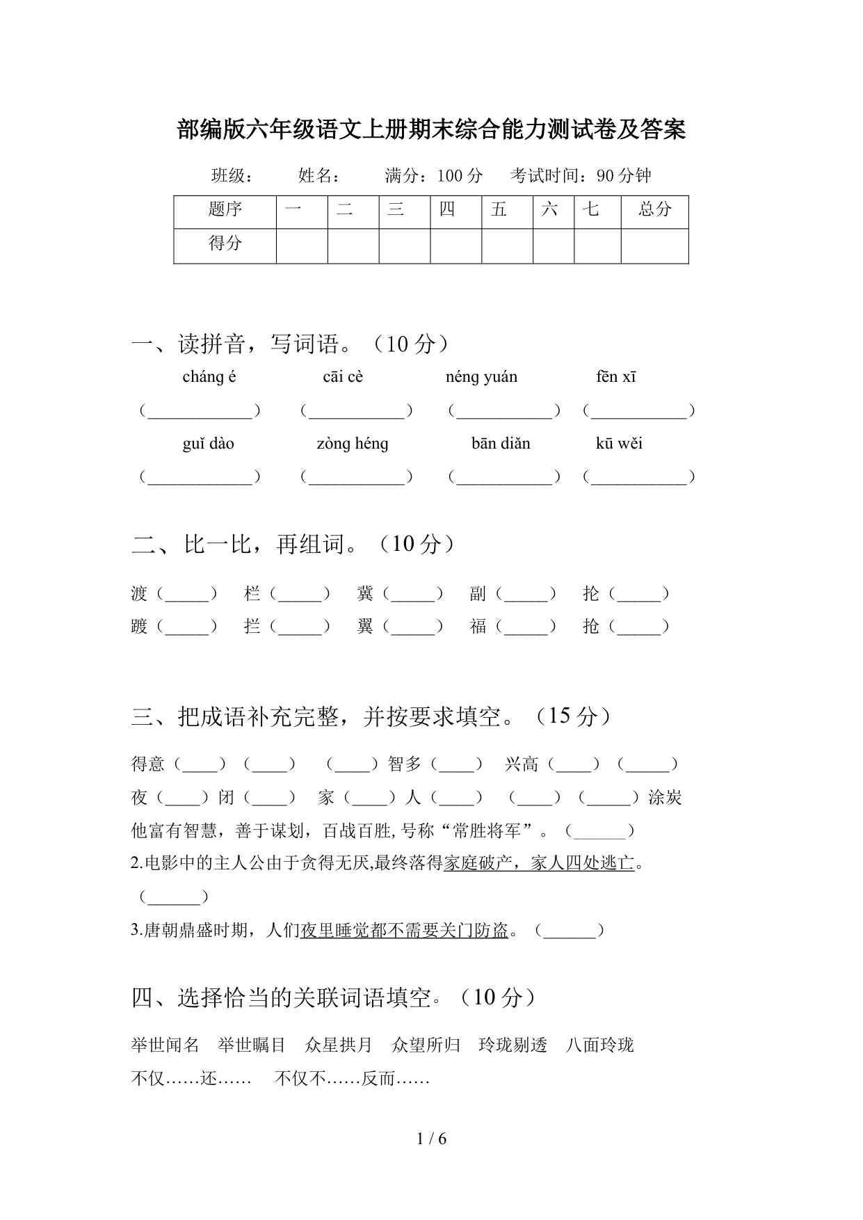 上一篇:部编版六年级语文上册期末测试卷(附答案)