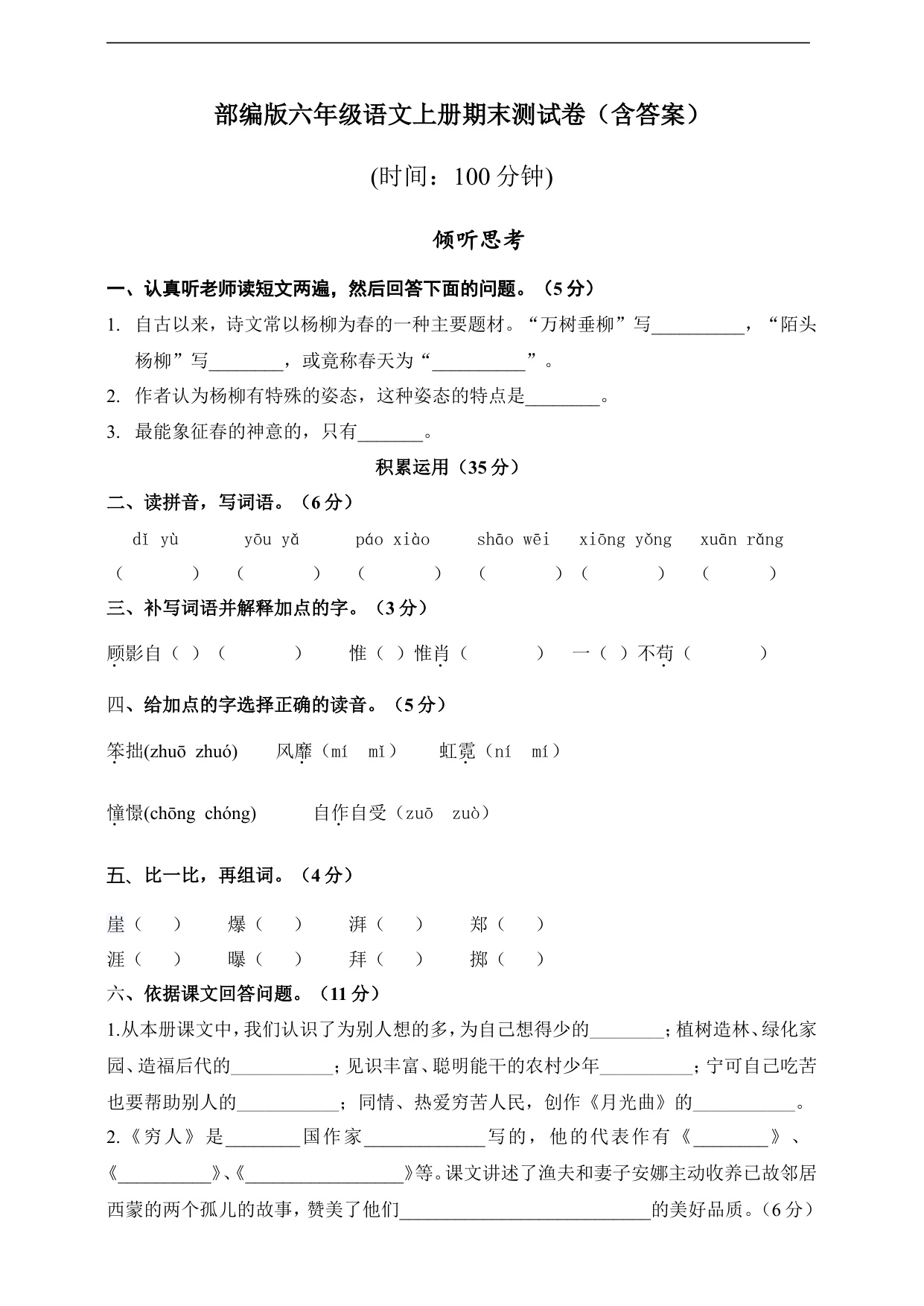下一篇:部编版语文六年级上册期末测试卷(含答案)