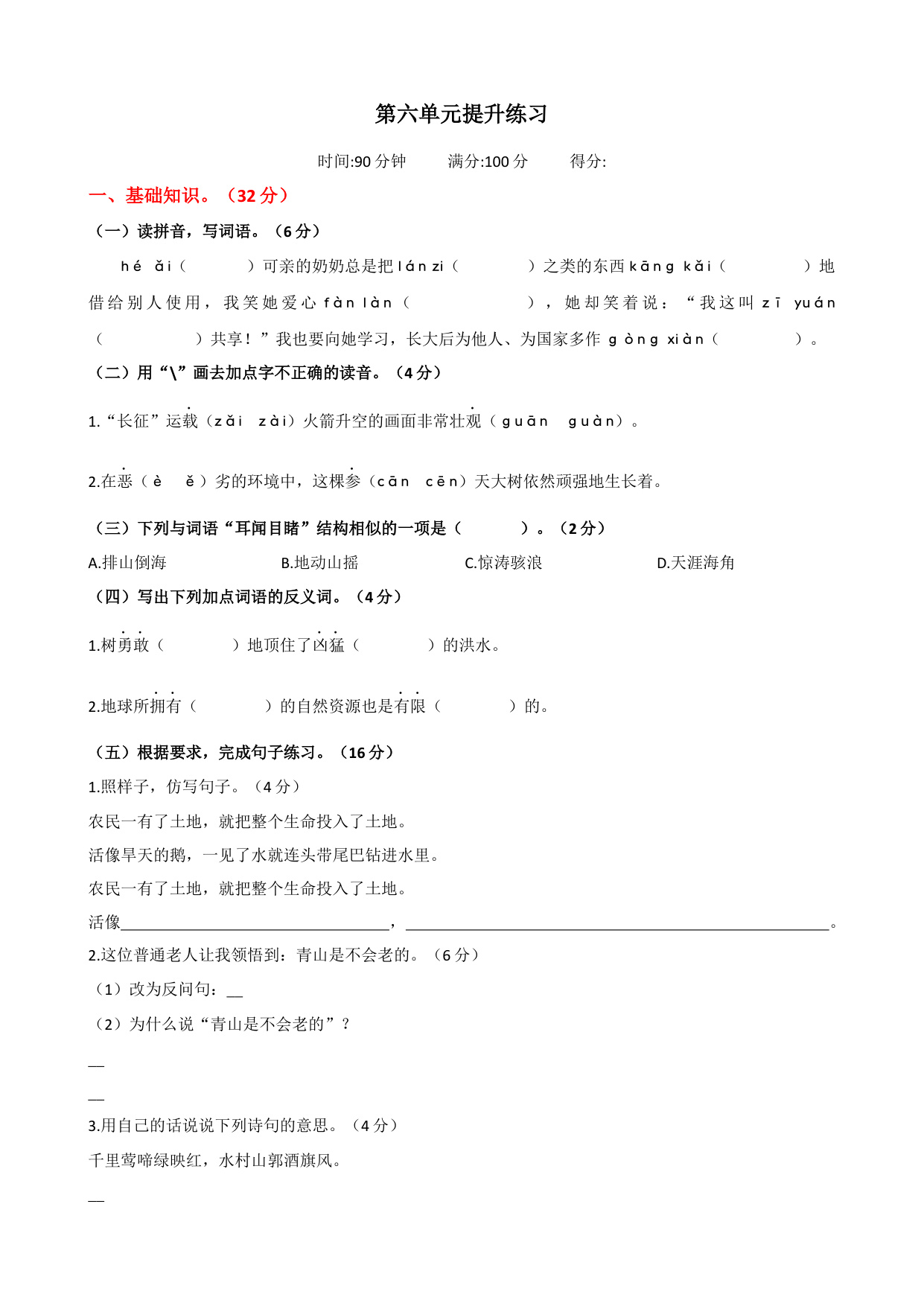 下一篇:六上语文第四单元提升练习卷